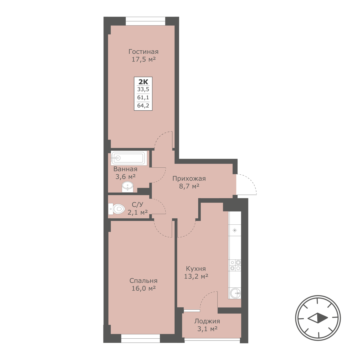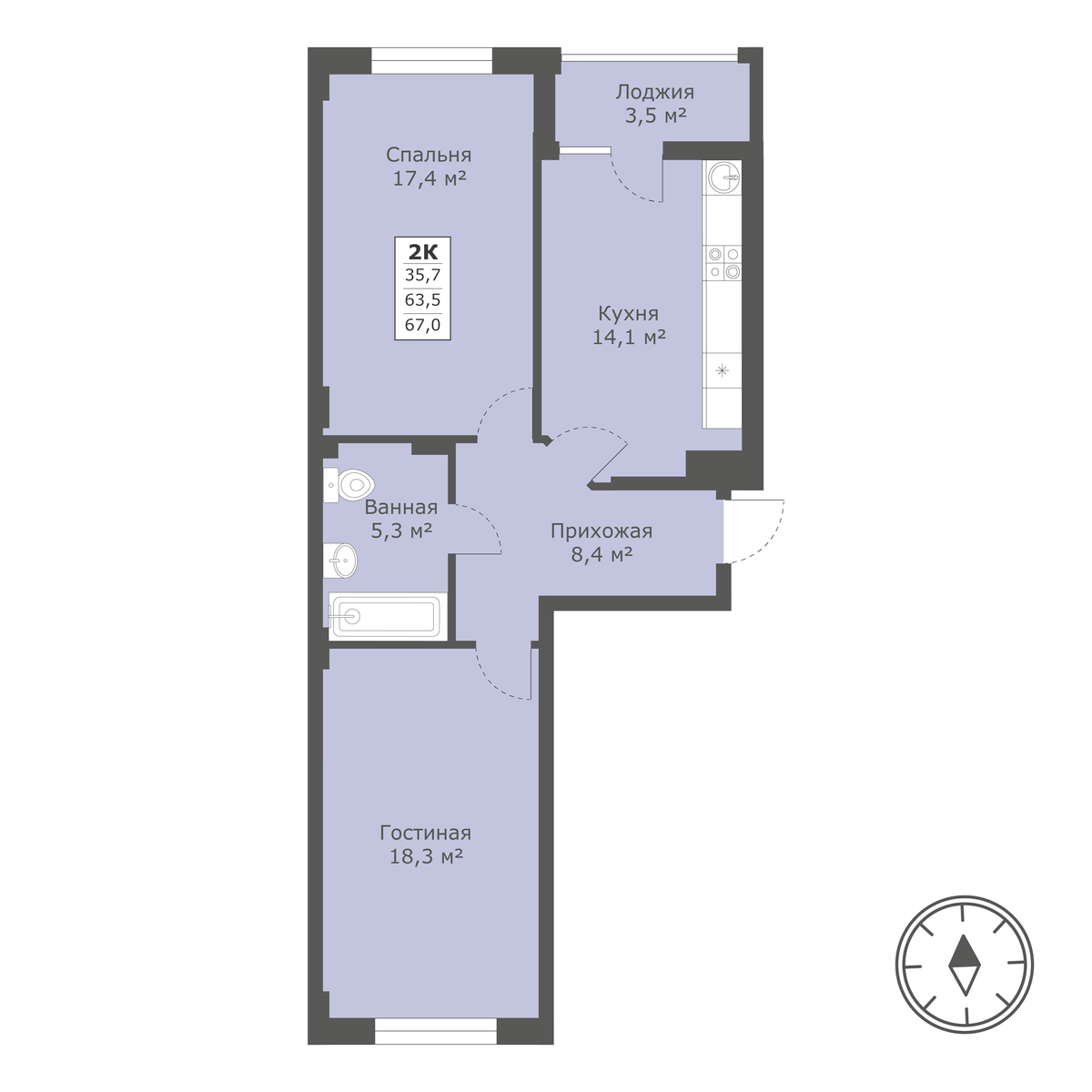 | 2-комн | от 64 м² до 70 м² | от 5,94 млн ₽ | 53 |