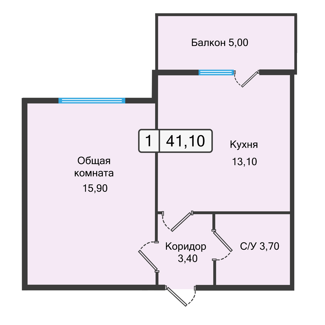| 1-комн | от 40 м² до 46 м² | от 4,10 млн ₽ | 16 |