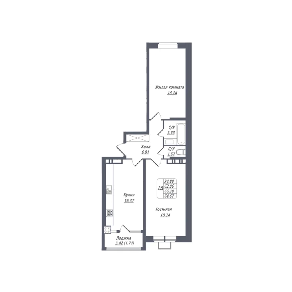 | 2-комн | от 60 м² до 75 м² | от 7,44 млн ₽ | 22 |