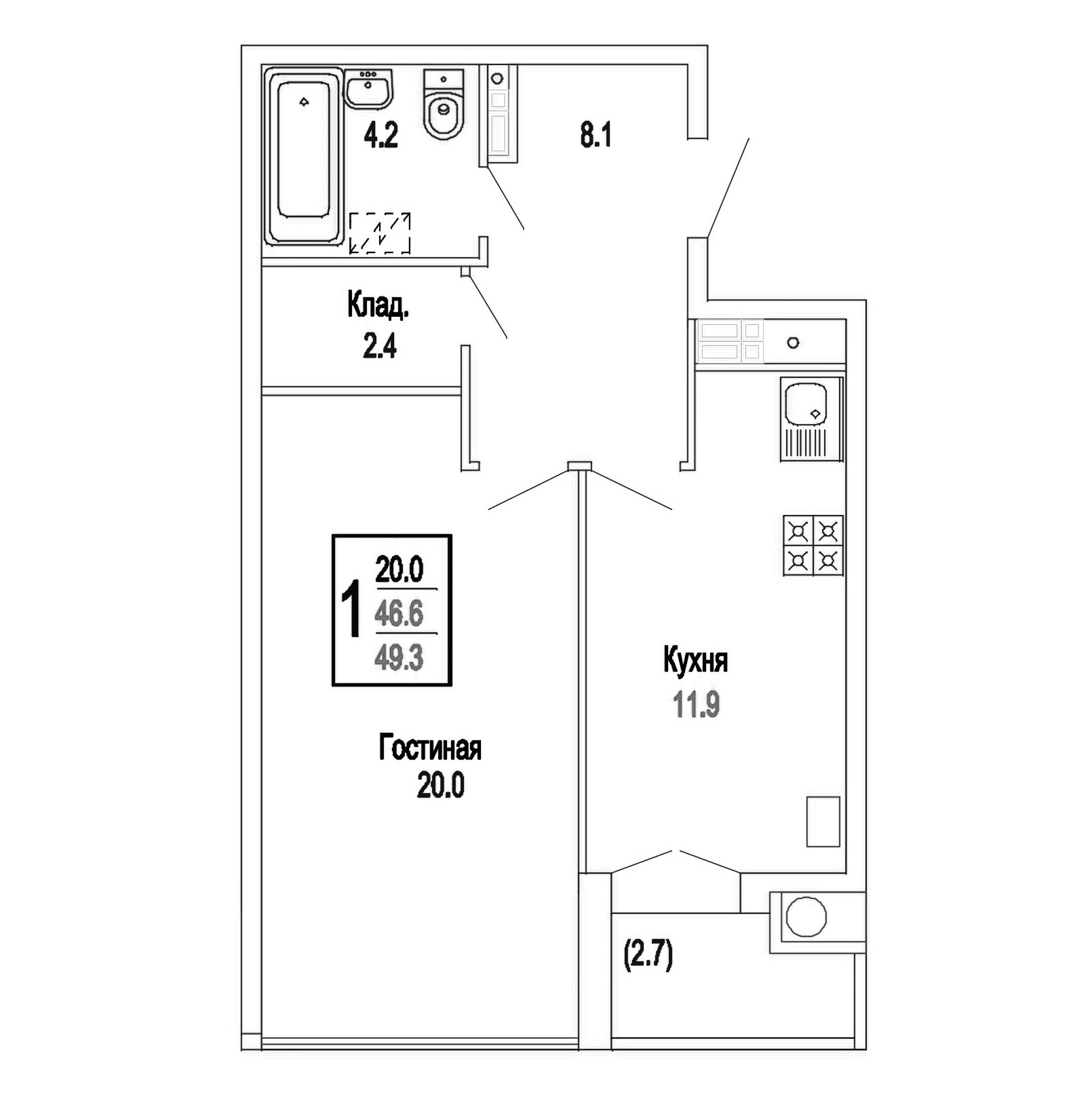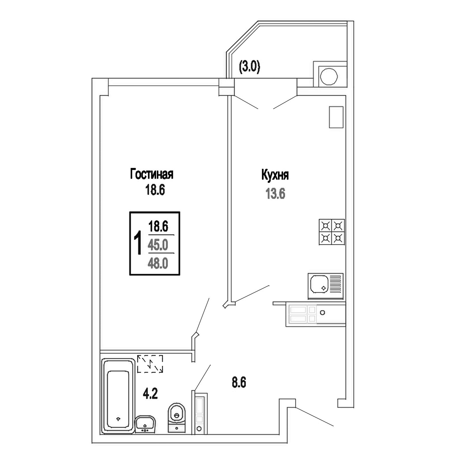| 1-комн | от 48 м² до 49 м² | от 7,10 млн ₽ | 3 |