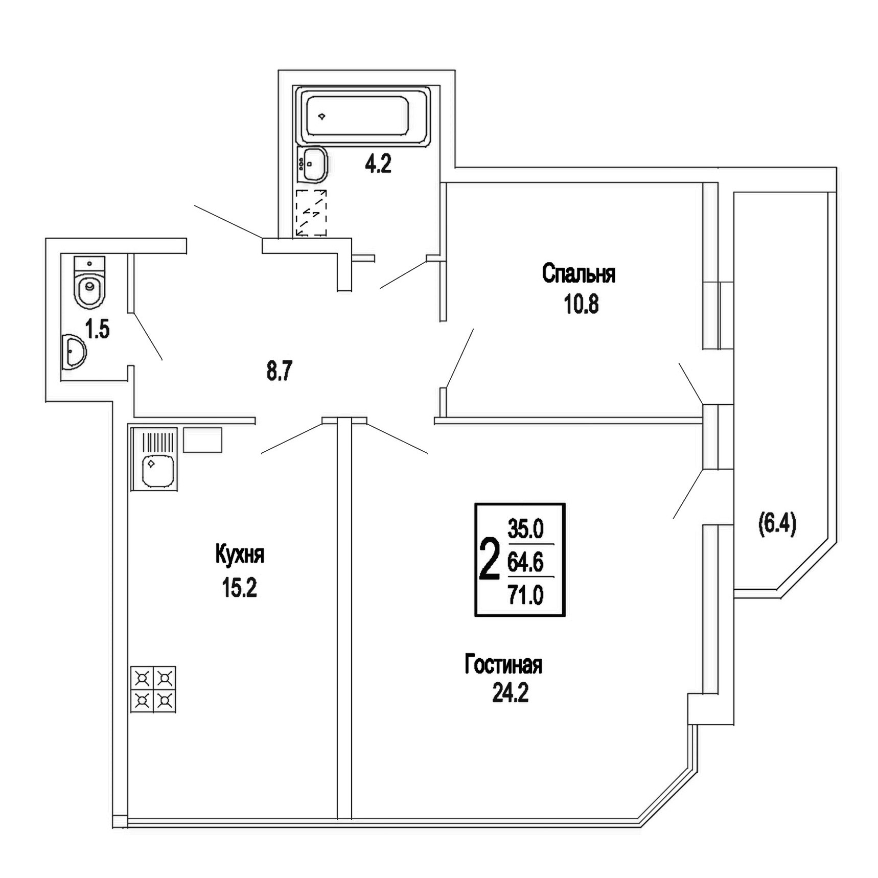 | 2-комн | от 65 м² до 71 м² | от 8 млн ₽ | 14 |