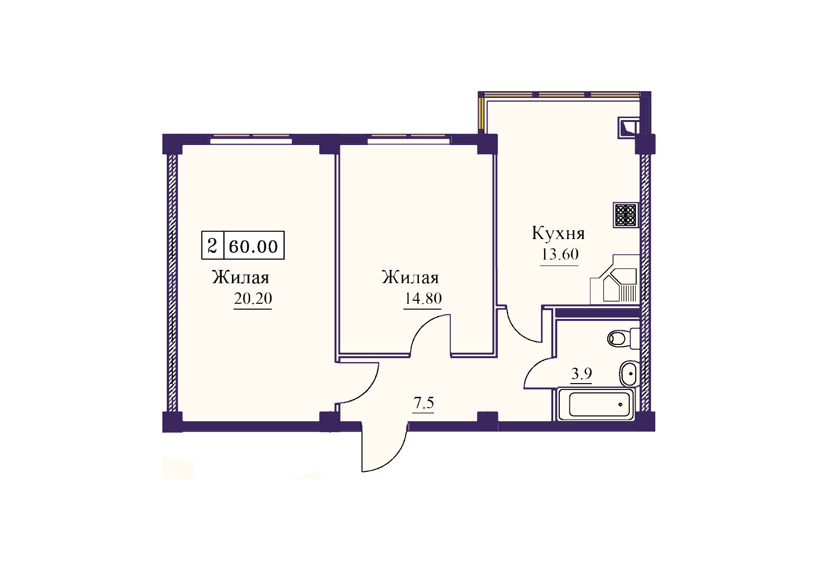 | 2-комн | от 60 м² до 90 м² | от 5,69 млн ₽ | 72 |