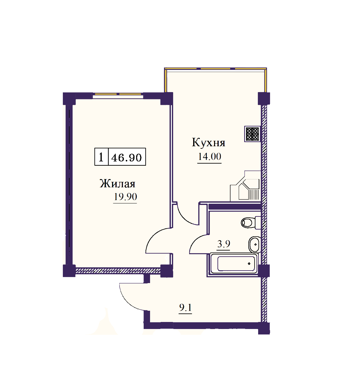 | 1-комн | от 40 м² до 47 м² | от 4,34 млн ₽ | 170 |