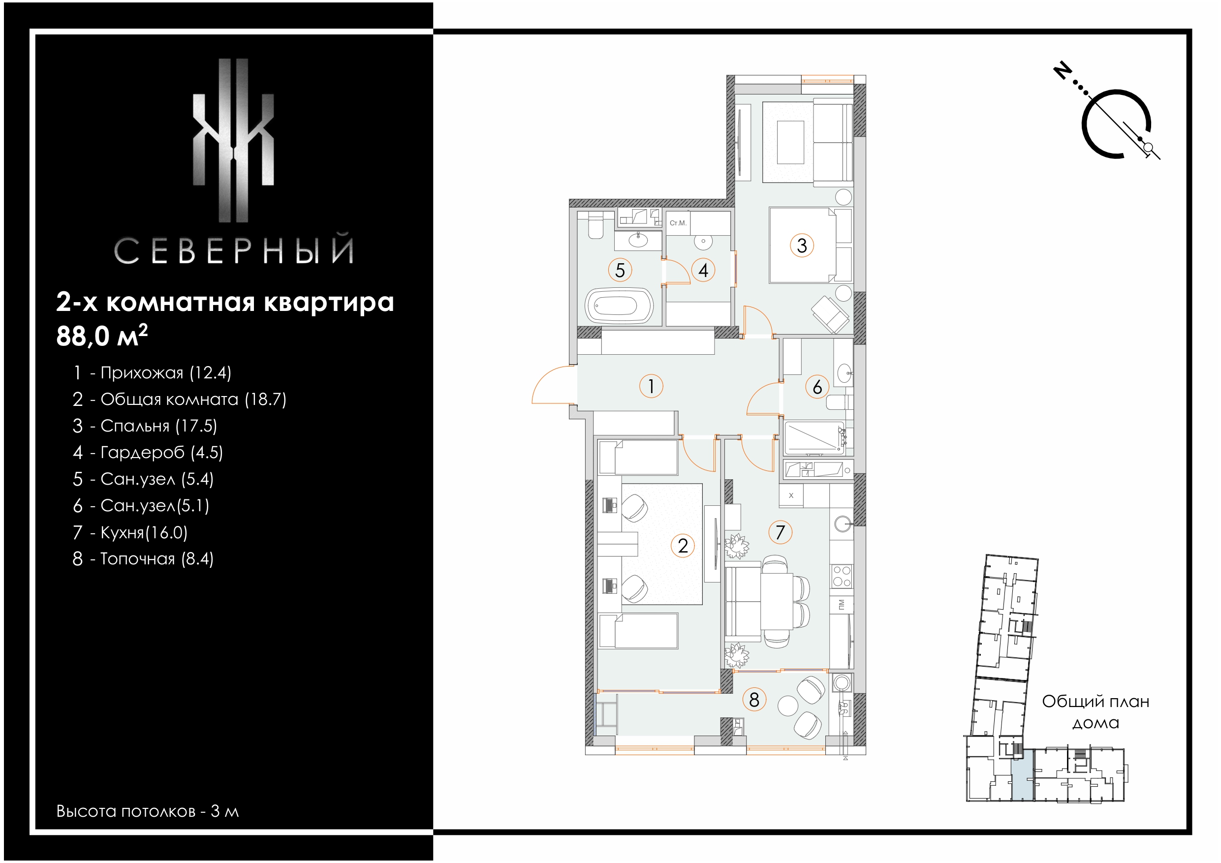 | 2-комн | от 57 м² до 88 м² | от 6,89 млн ₽ | 17 |