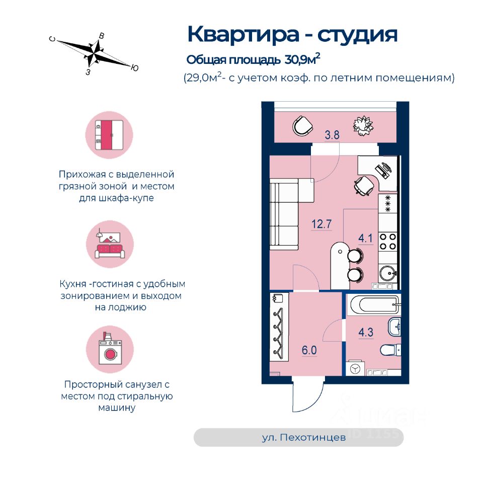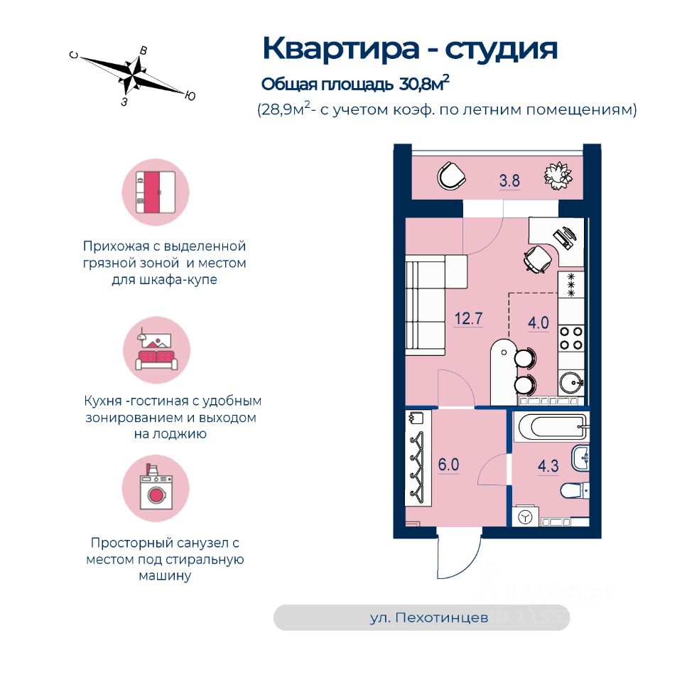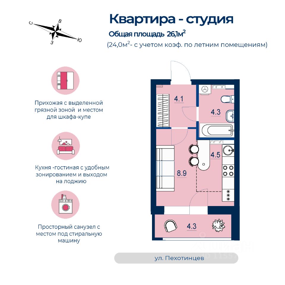 | Студии | от 24 м² до 29 м² | от 4,21 млн ₽ | 16 |