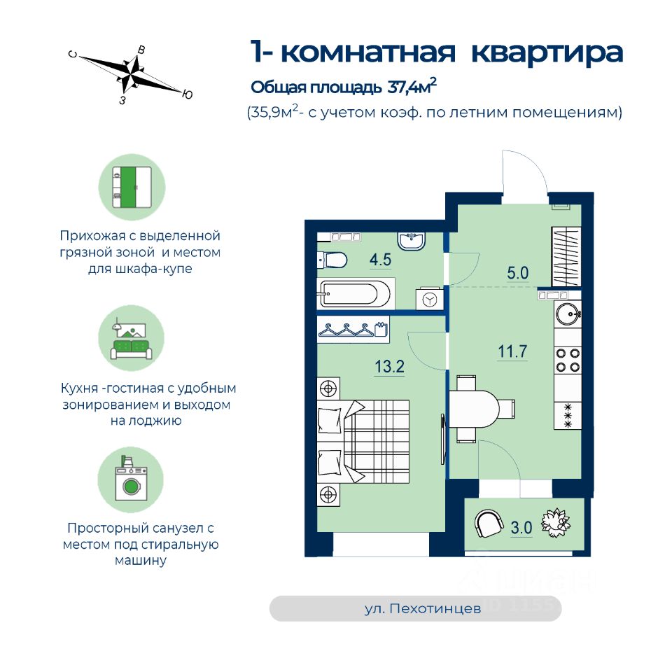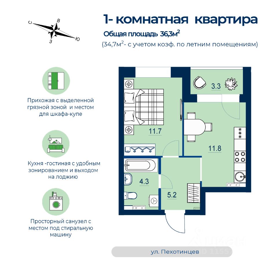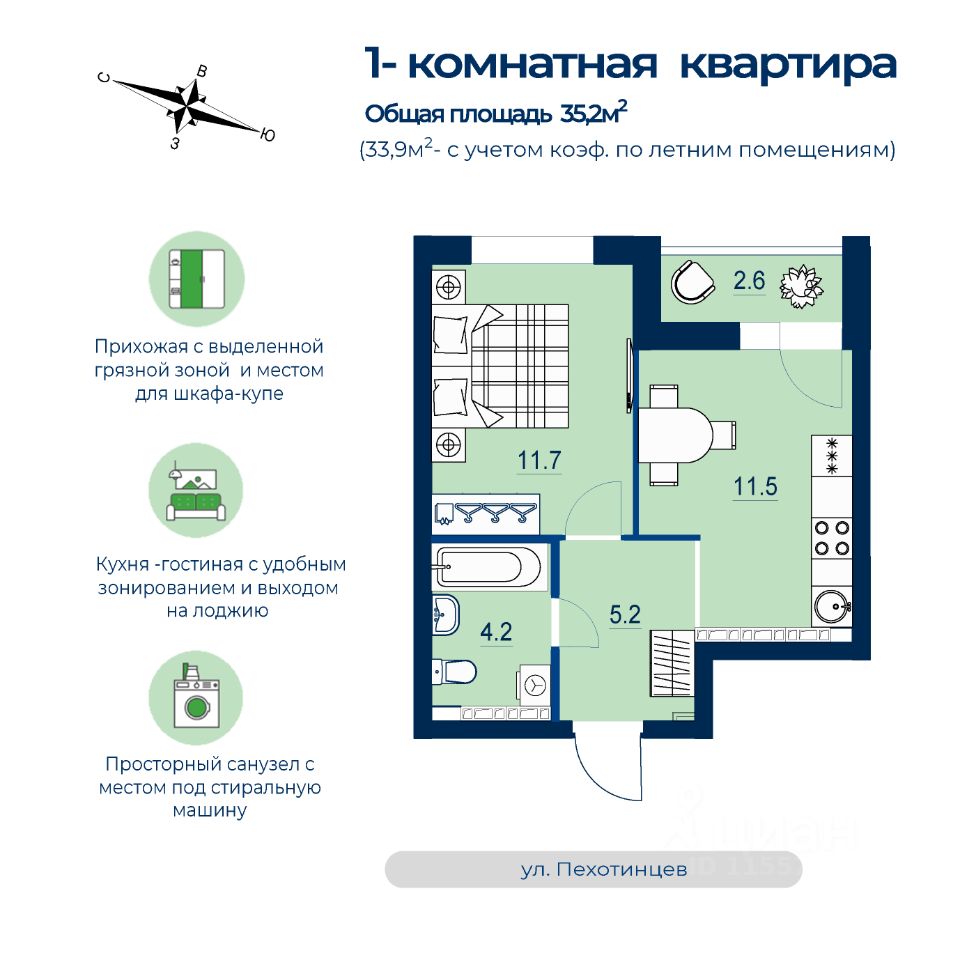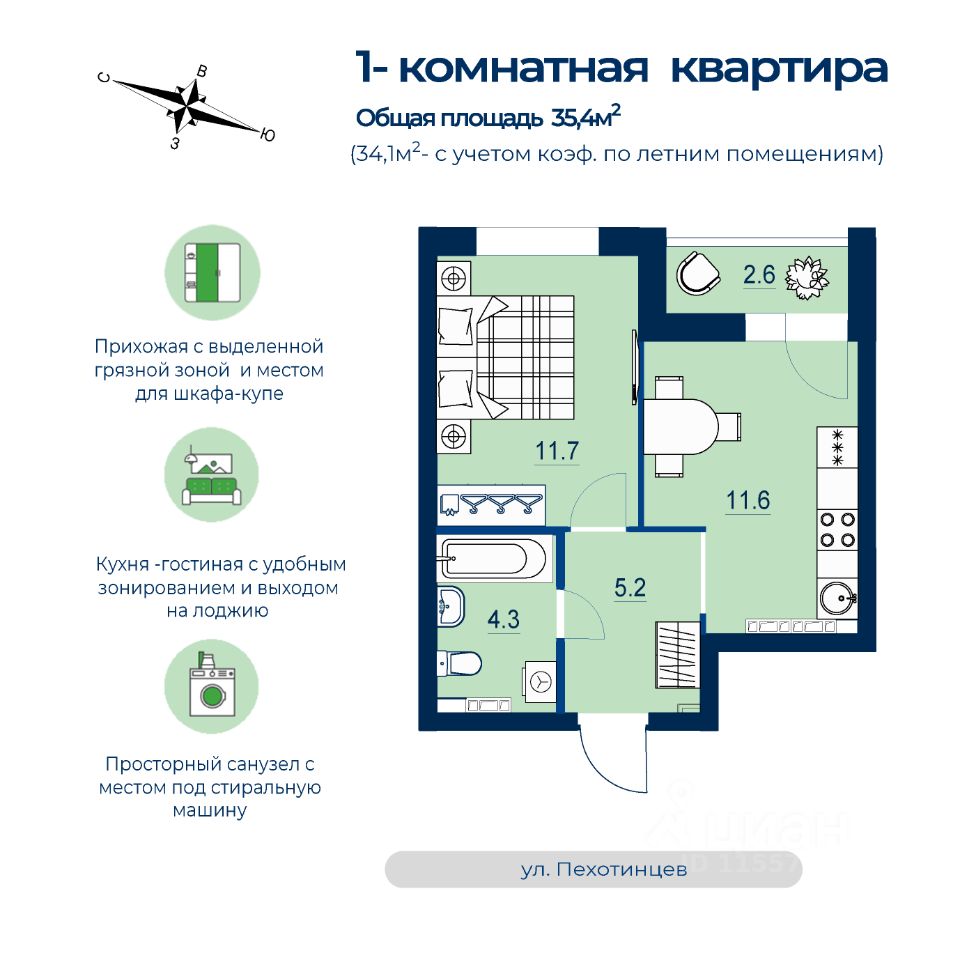 | 1-комн | от 34 м² до 52 м² | от 5,03 млн ₽ | 41 |