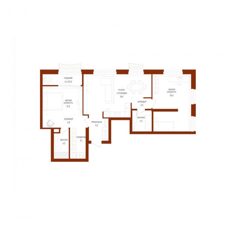 | 3-комн | от 77 м² до 108 м² | от 18,76 млн ₽ | 11 |