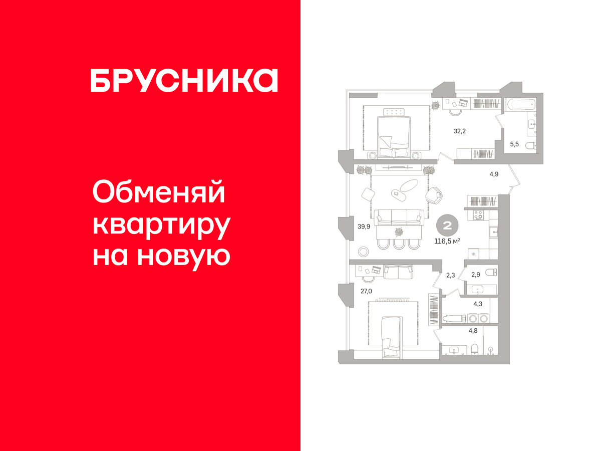| 2-комн | от 79 м² до 116 м² | от 31,42 млн ₽ | 37 |