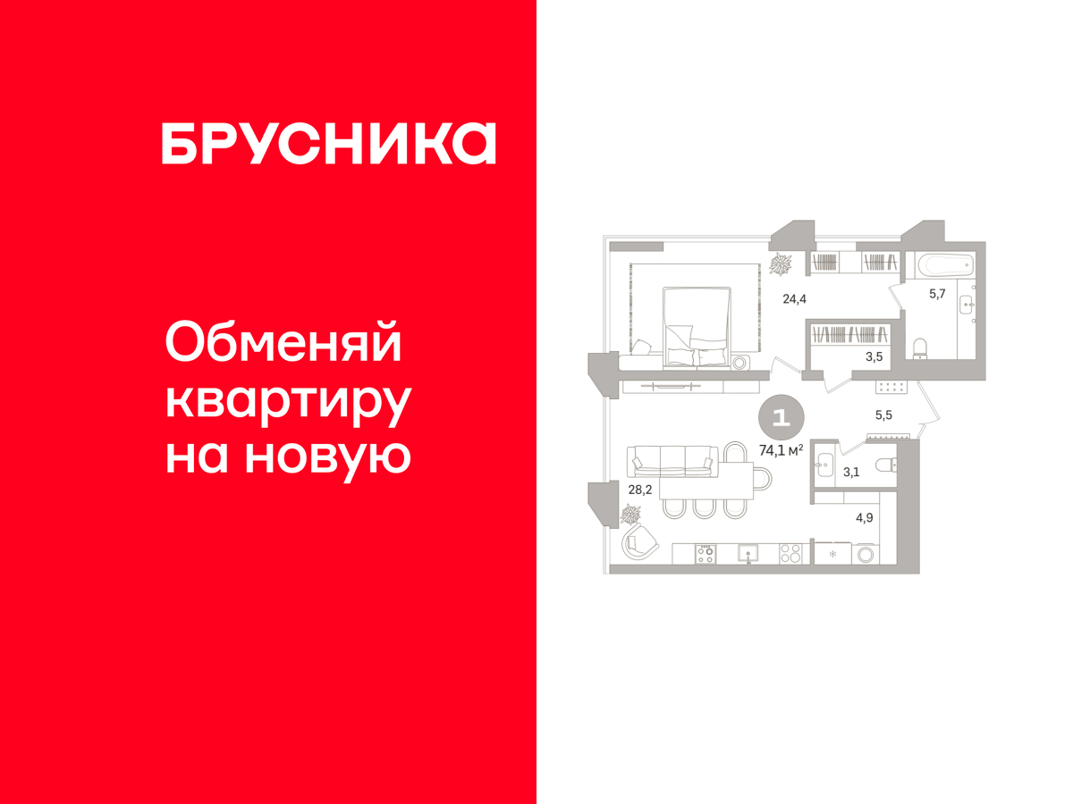 | 1-комн | от 56 м² до 74 м² | от 23,59 млн ₽ | 20 |