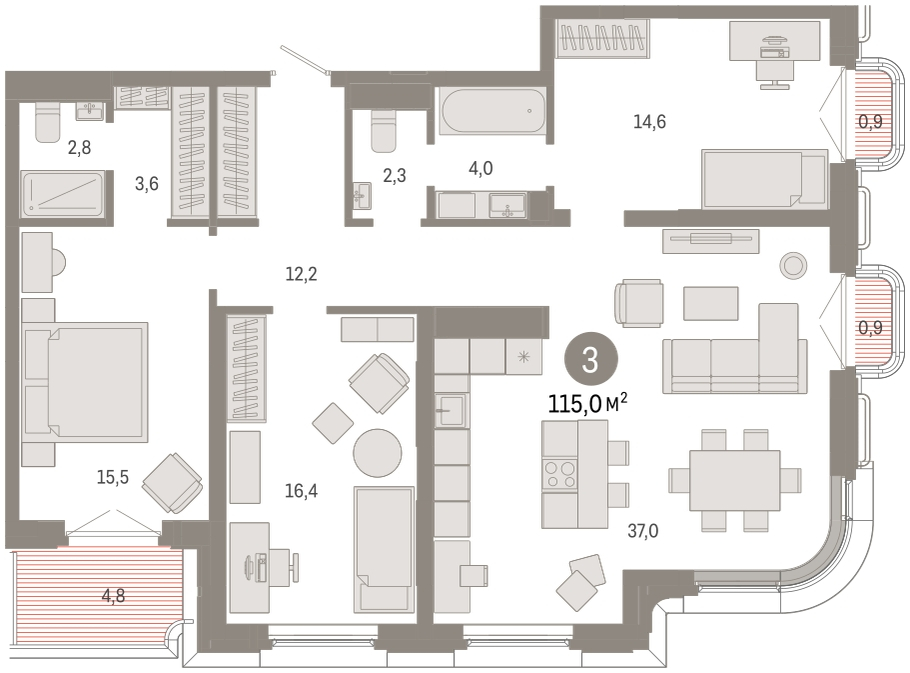 | 3-комн | от 115 м² до 220 м² | от 26,97 млн ₽ | 9 |