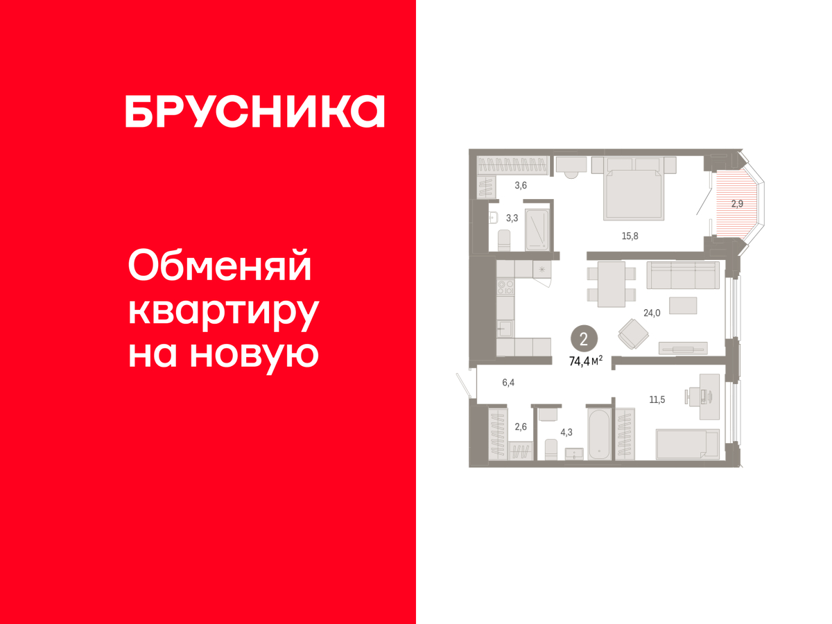 | 2-комн | от 74 м² до 96 м² | от 22,06 млн ₽ | 17 |