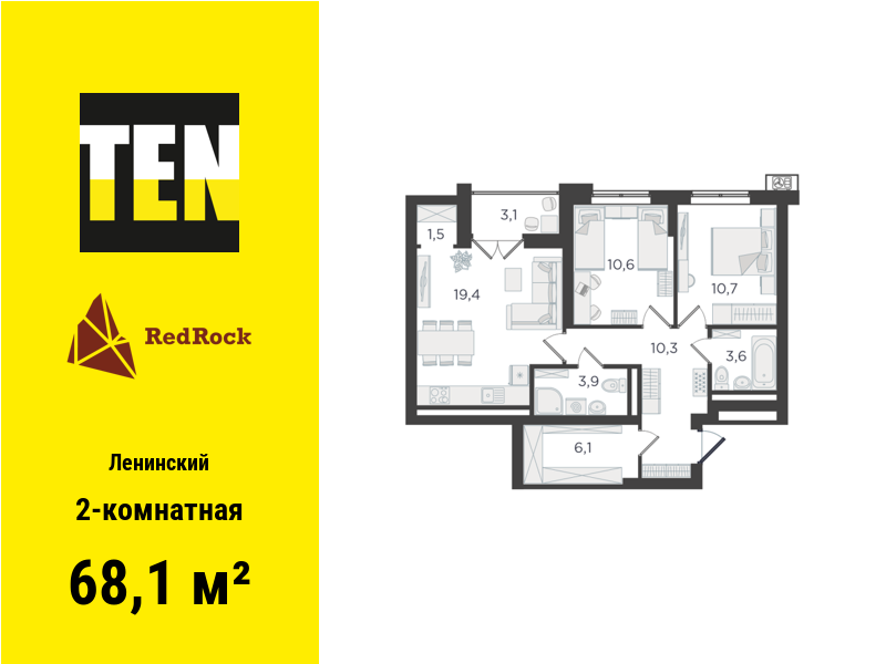 | 2-комн | от 51 м² до 68 м² | от 15,39 млн ₽ | 3 |