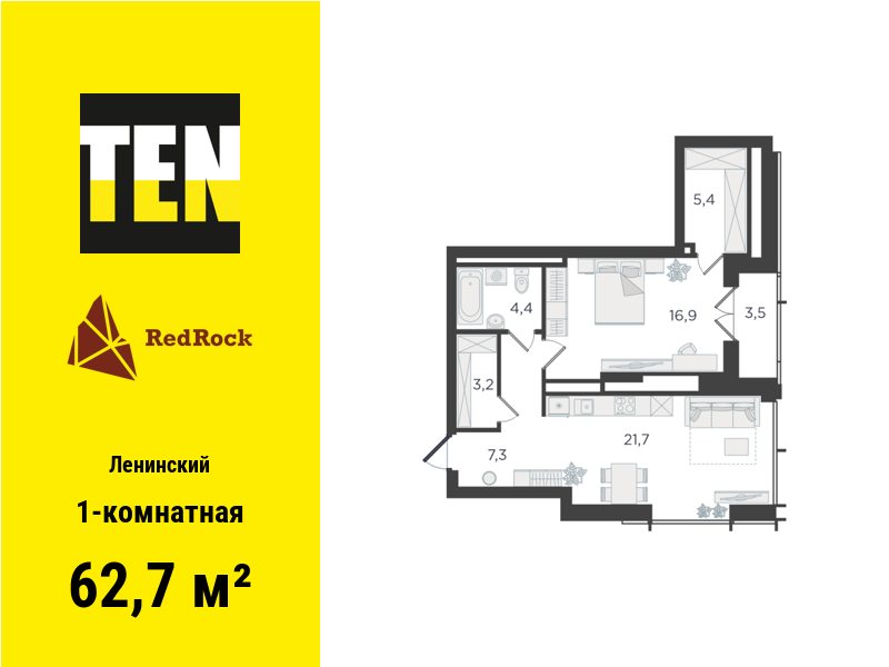 | 1-комн | от 41 м² до 63 м² | от 12,51 млн ₽ | 3 |