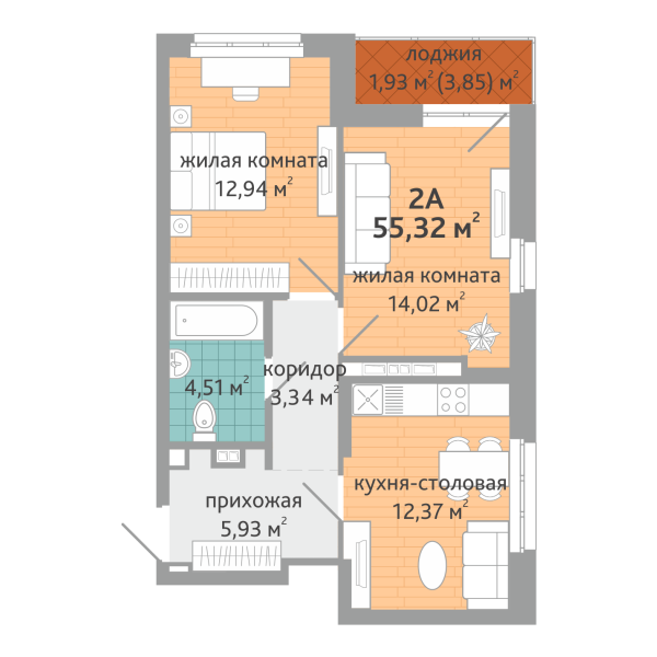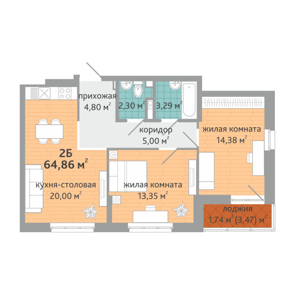 | 2-комн | от 54 м² до 65 м² | от 8,70 млн ₽ | 10 |