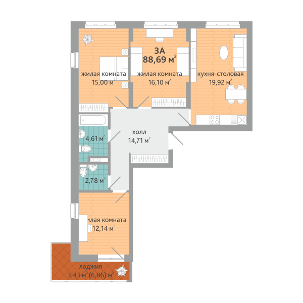 | 3-комн | от 89 м² | от 11,30 млн ₽ | 1 |