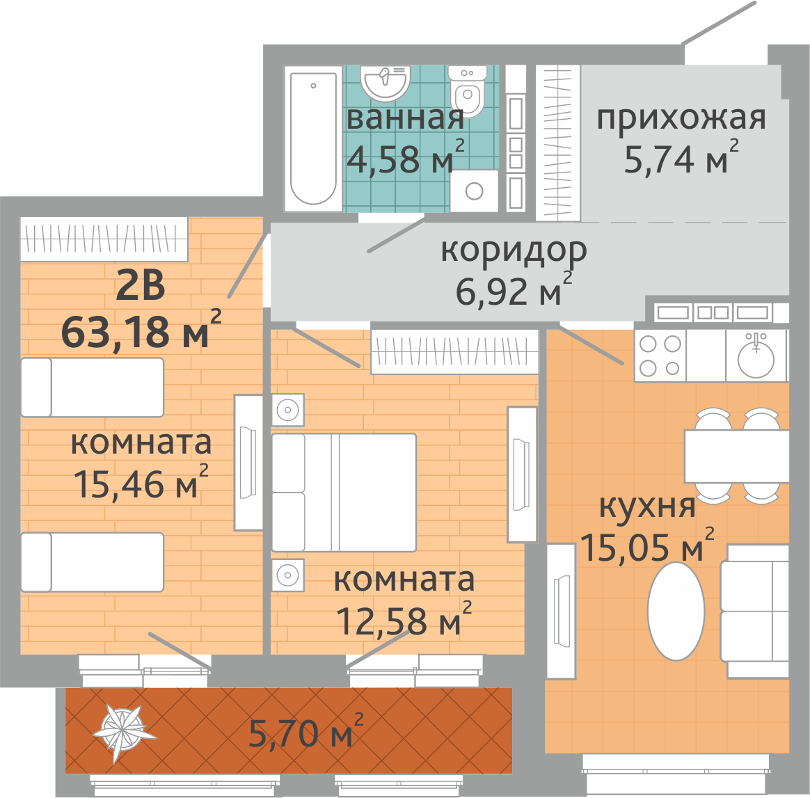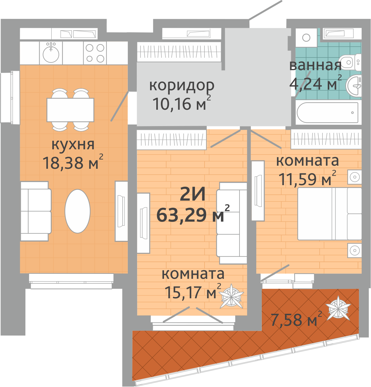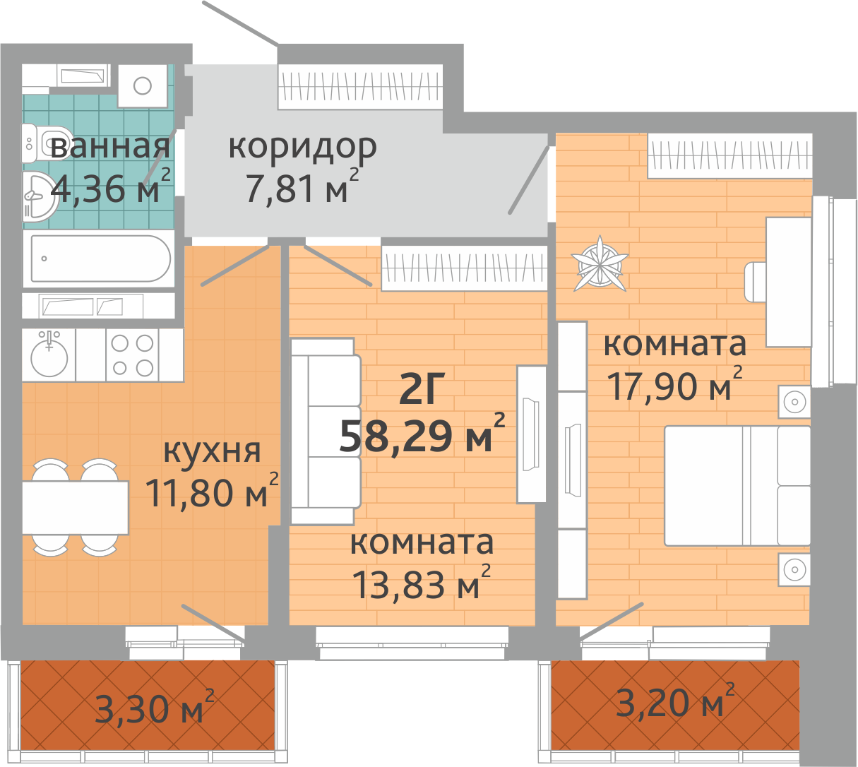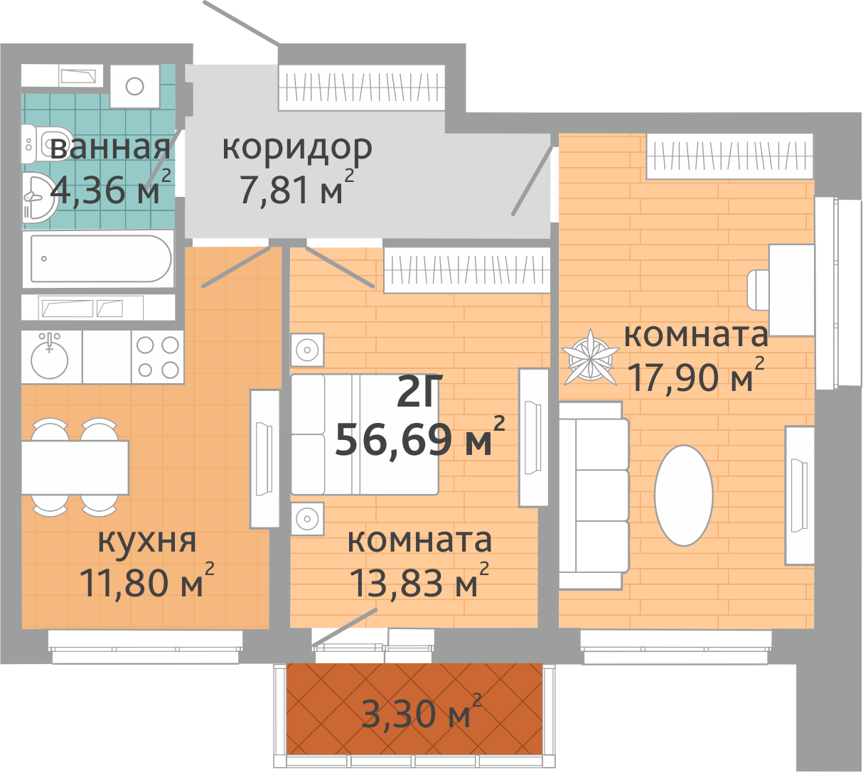 | 2-комн | от 57 м² до 80 м² | от 9,30 млн ₽ | 13 |