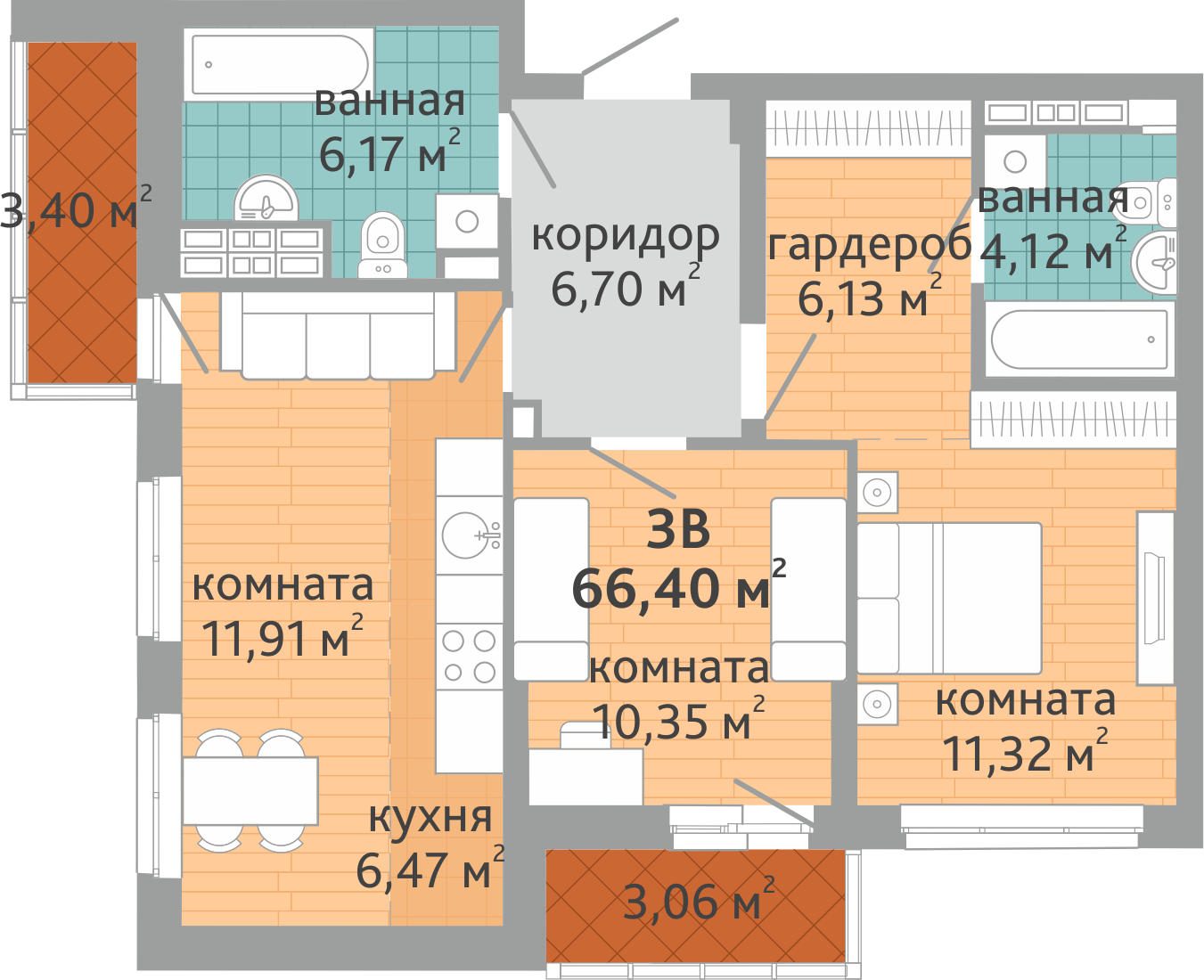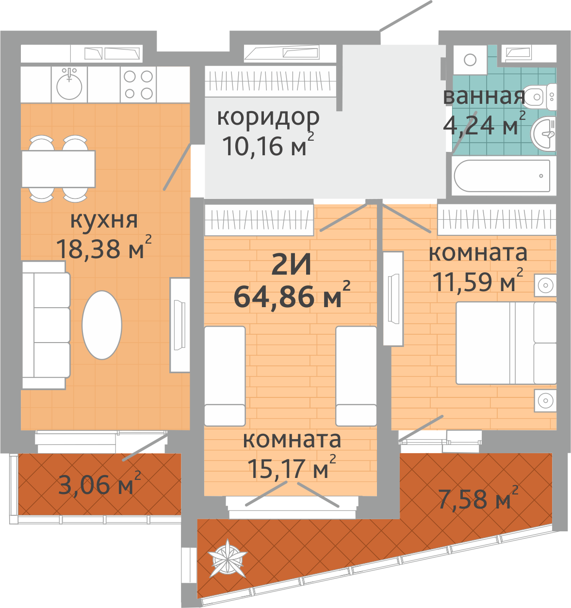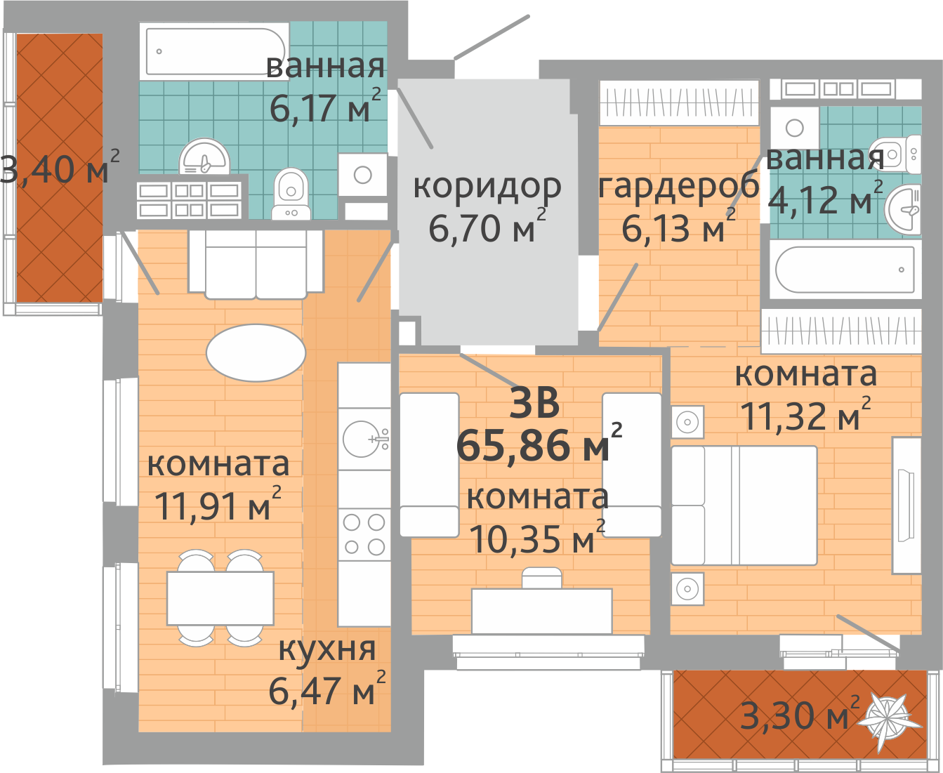| 3-комн | от 65 м² до 84 м² | от 9,75 млн ₽ | 12 |