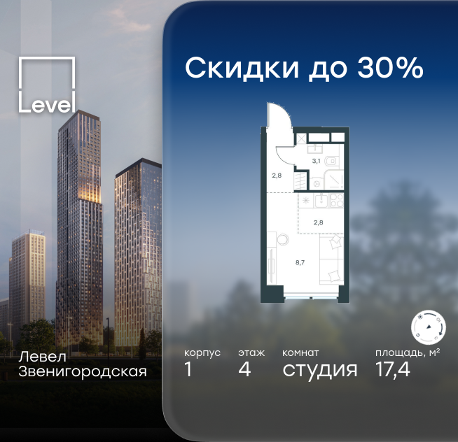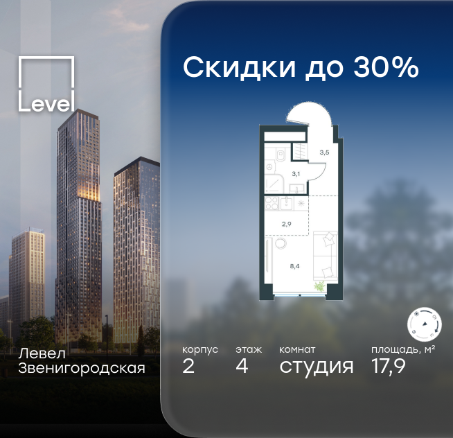 | Студии | от 17 м² до 19 м² | от 16,00 млн ₽ | 17 |