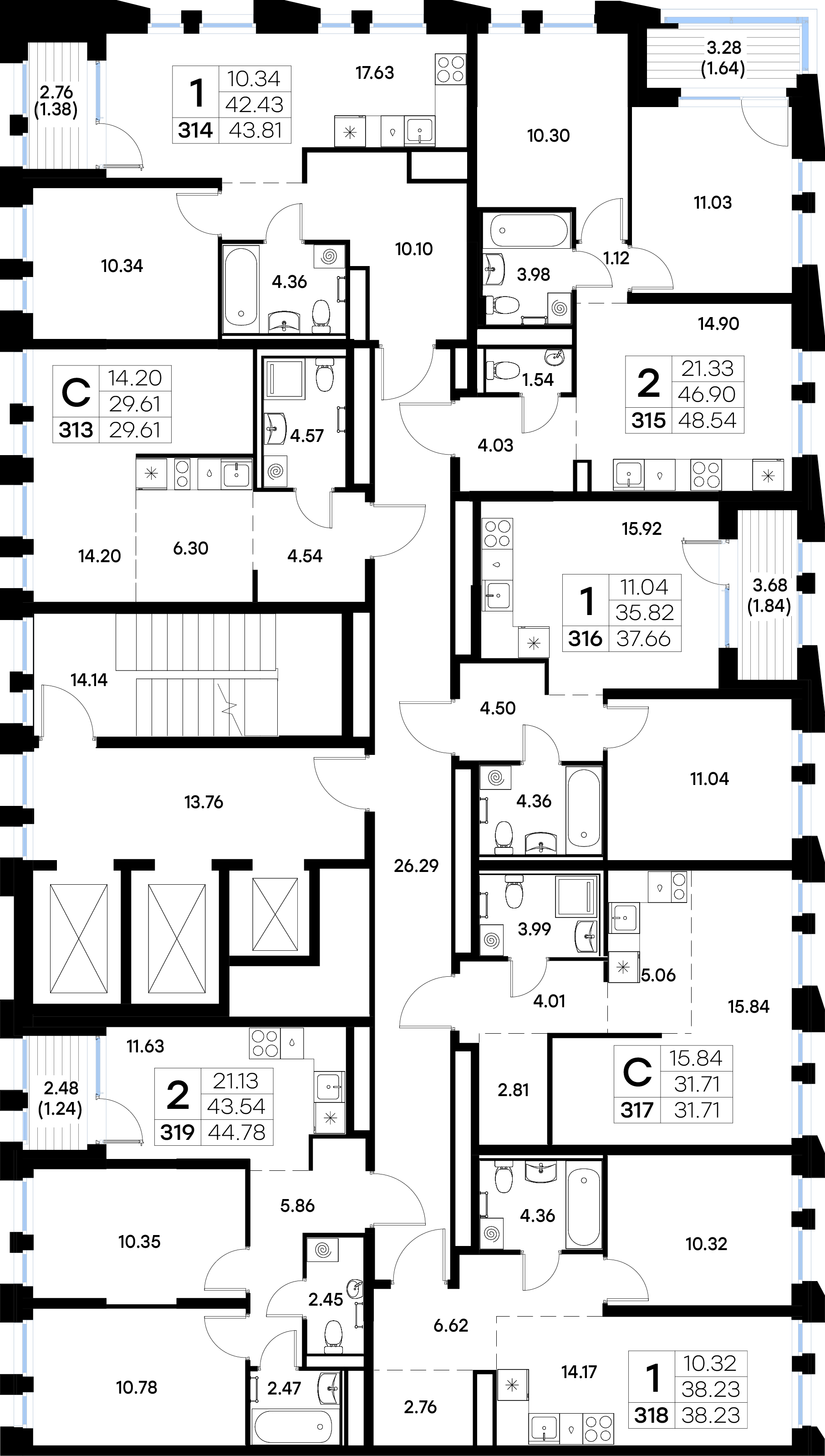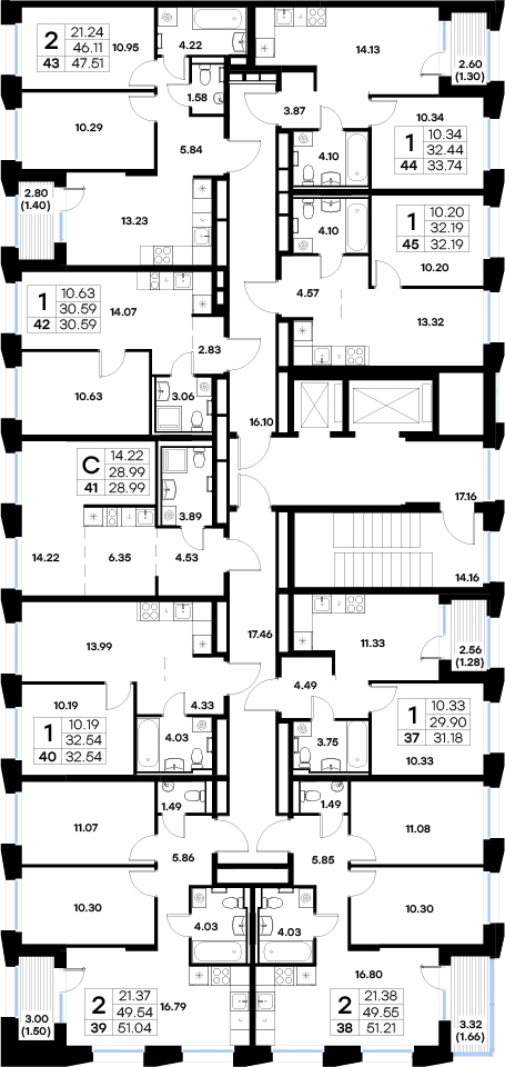 | 2-комн | от 44 м² до 63 м² | от 11,21 млн ₽ | 47 |