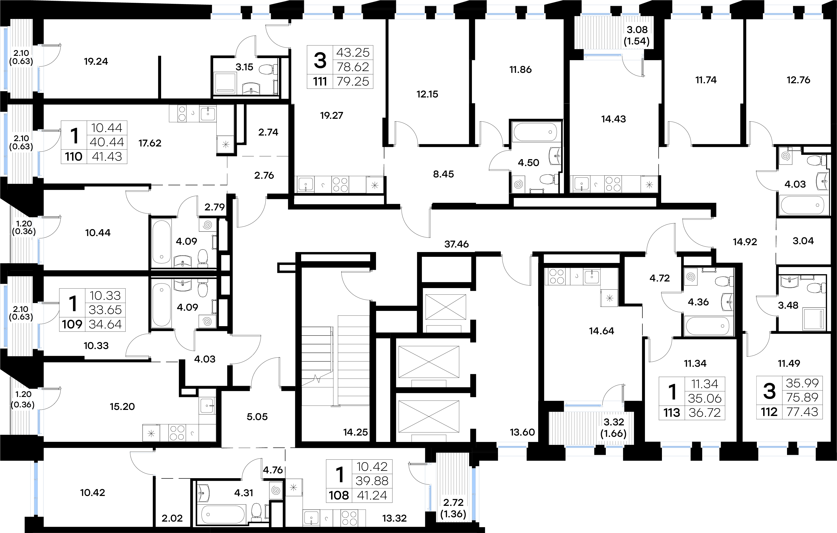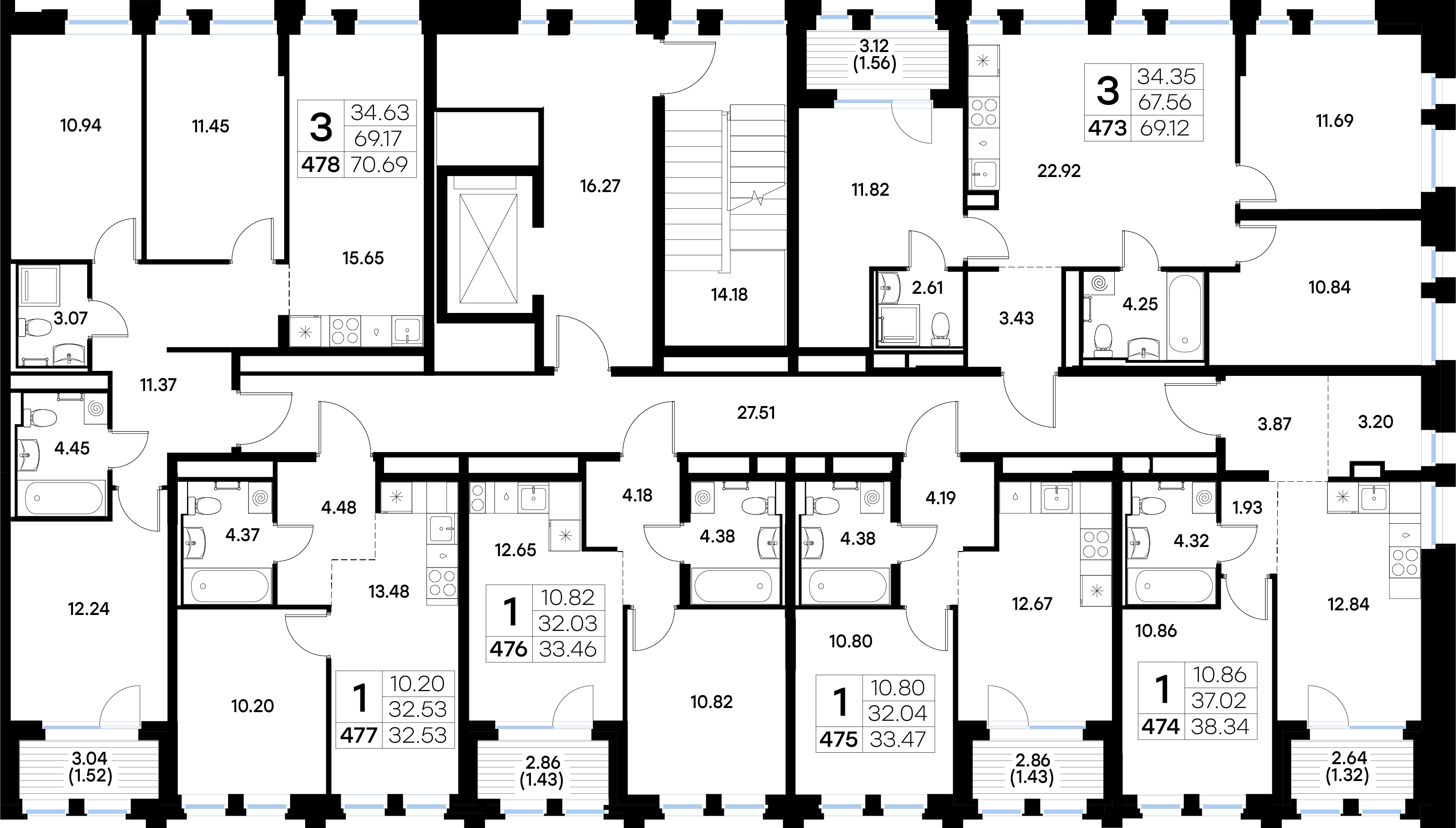 | 3-комн | от 68 м² до 79 м² | от 15,58 млн ₽ | 20 |