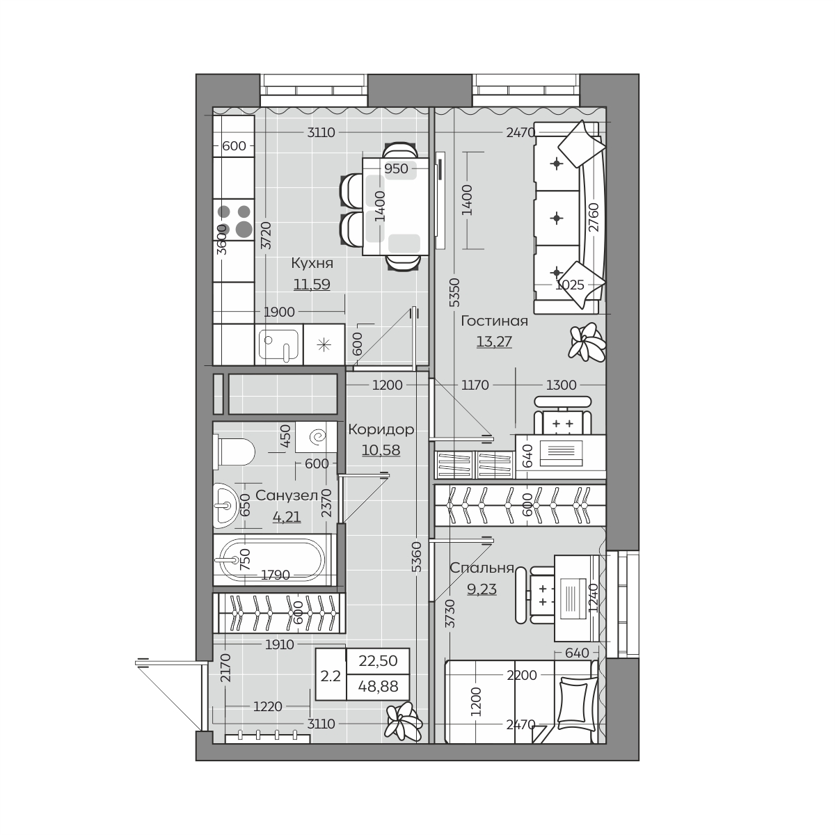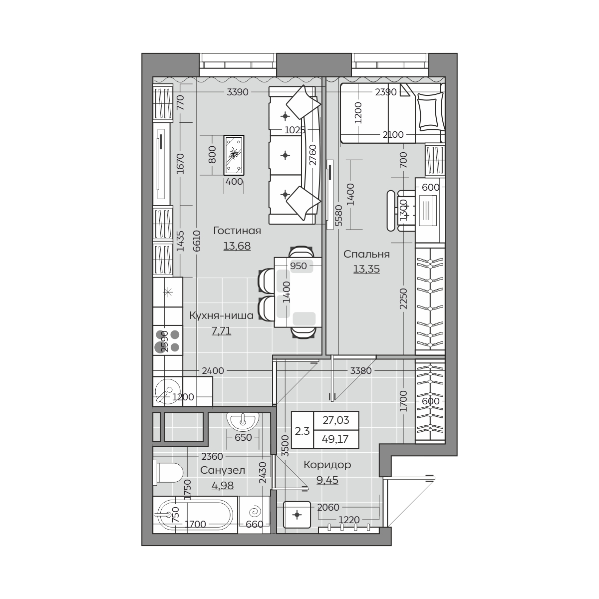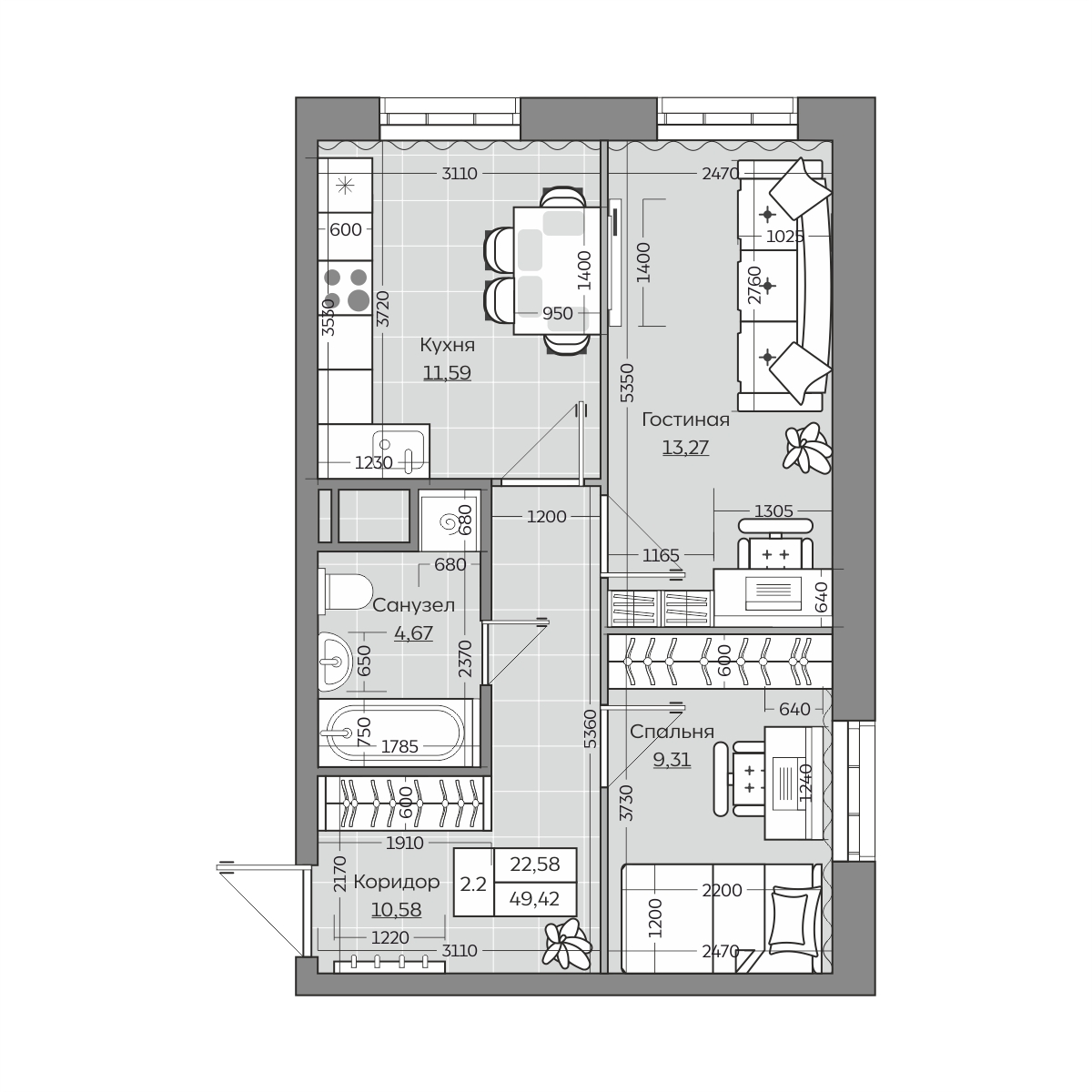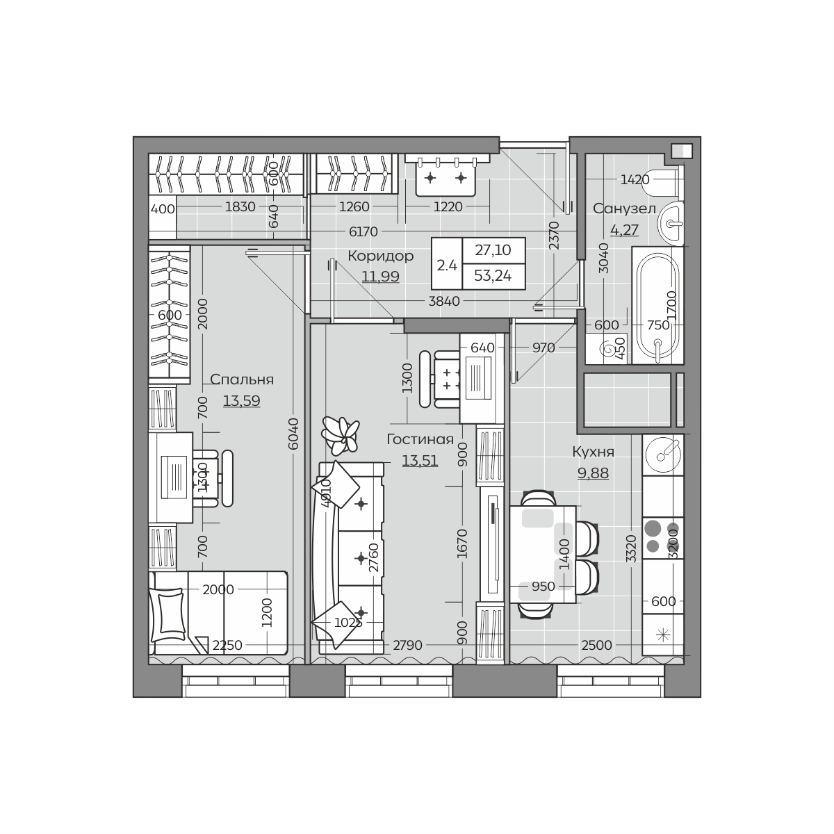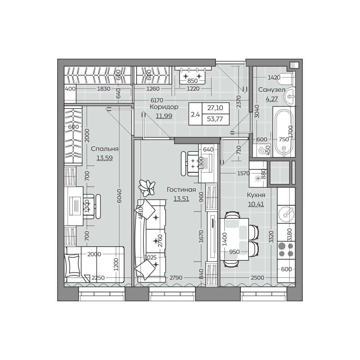 | 2-комн | от 47 м² до 54 м² | от 10,38 млн ₽ | 42 |