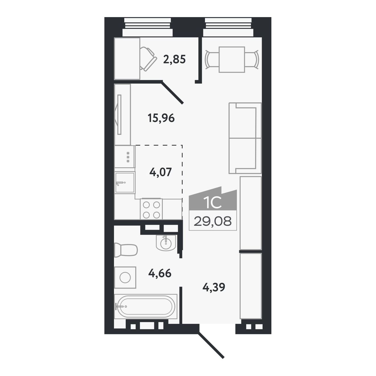 | Студии | от 29 м² до 90 м² | от 5,61 млн ₽ | 21 |