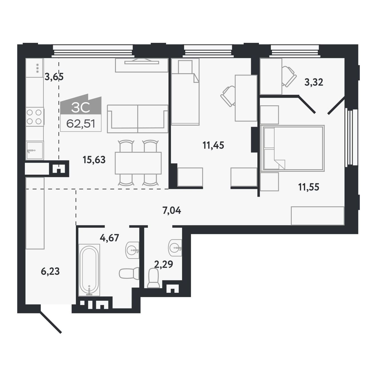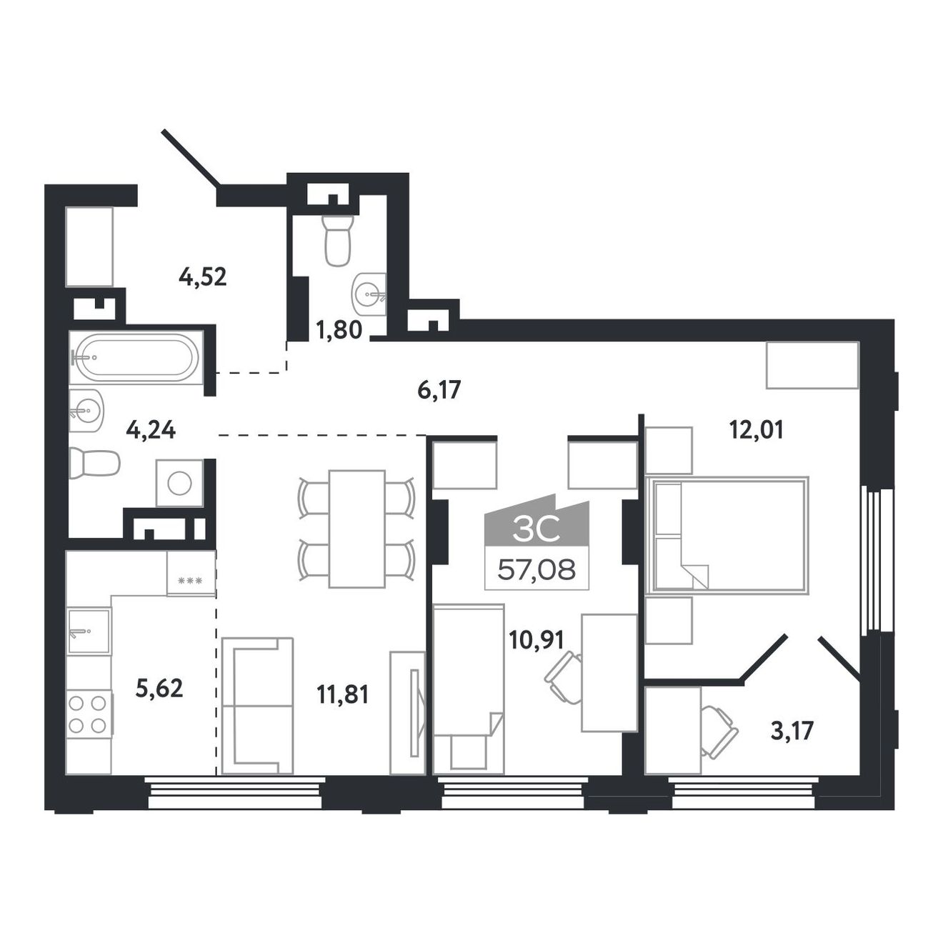 | 3-комн | от 57 м² до 93 м² | от 8,99 млн ₽ | 42 |