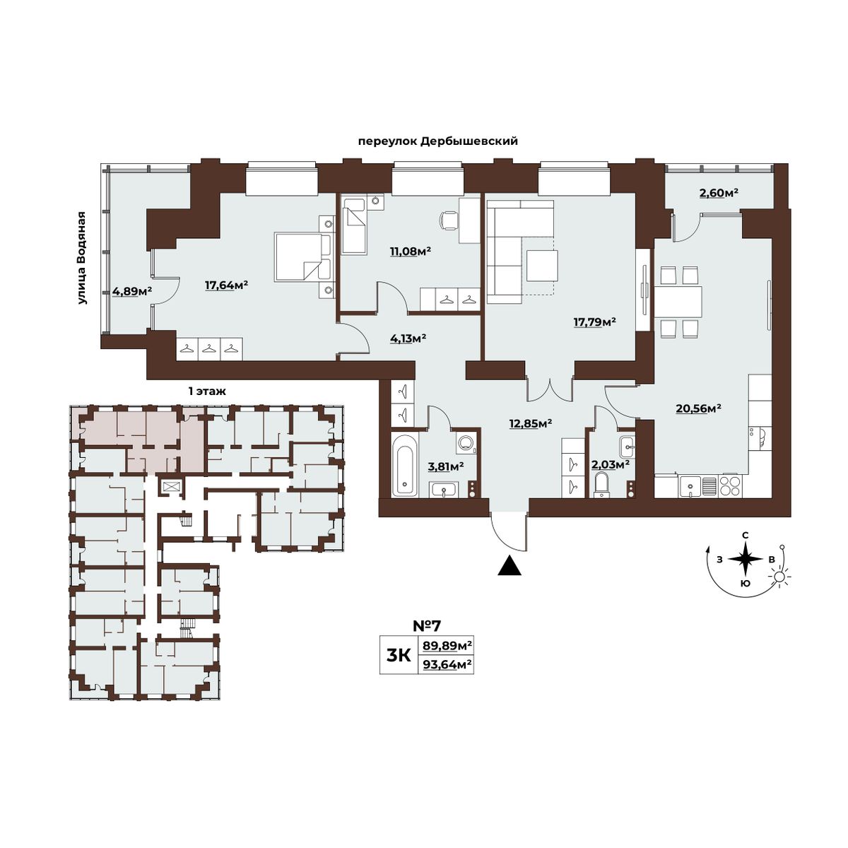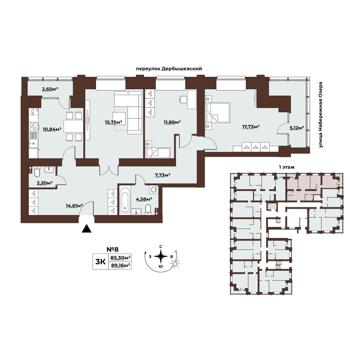 | 3-комн | от 89 м² до 94 м² | от 15,03 млн ₽ | 9 |