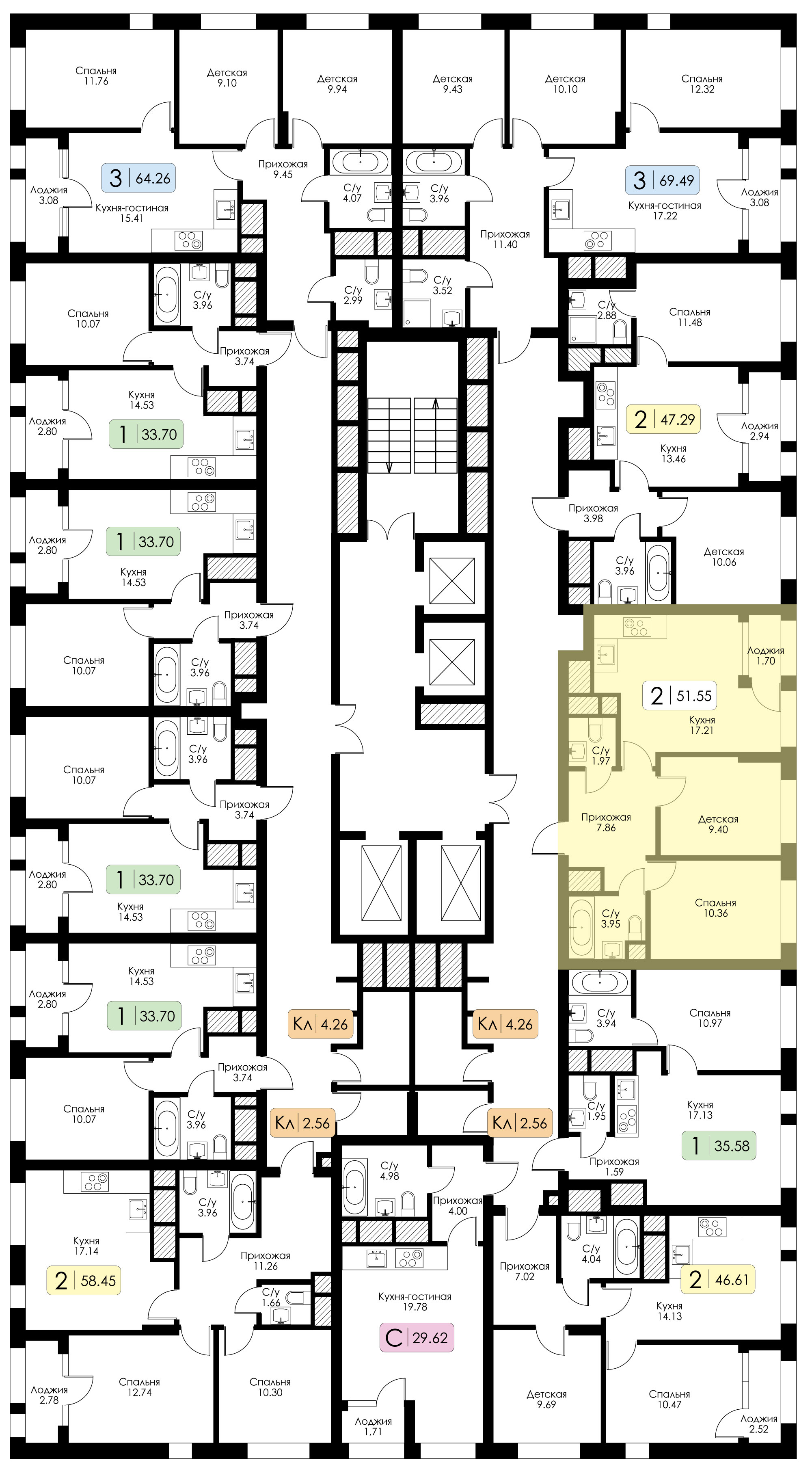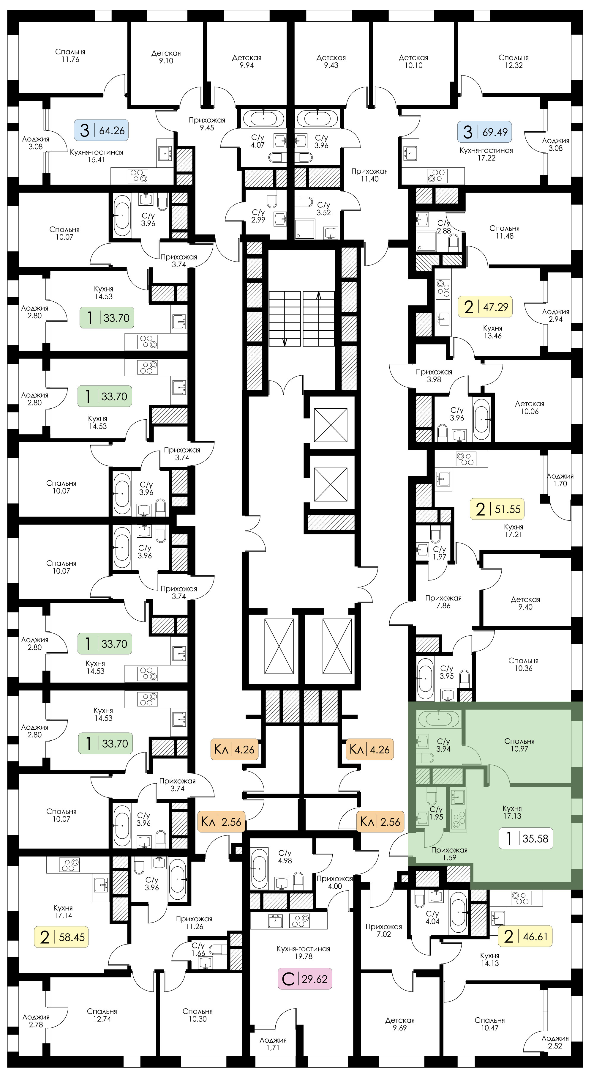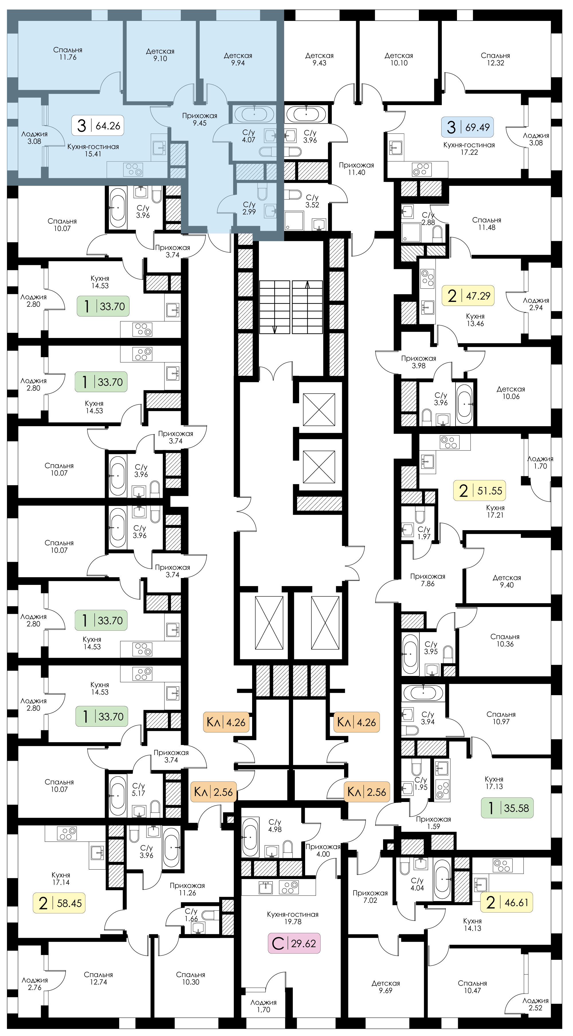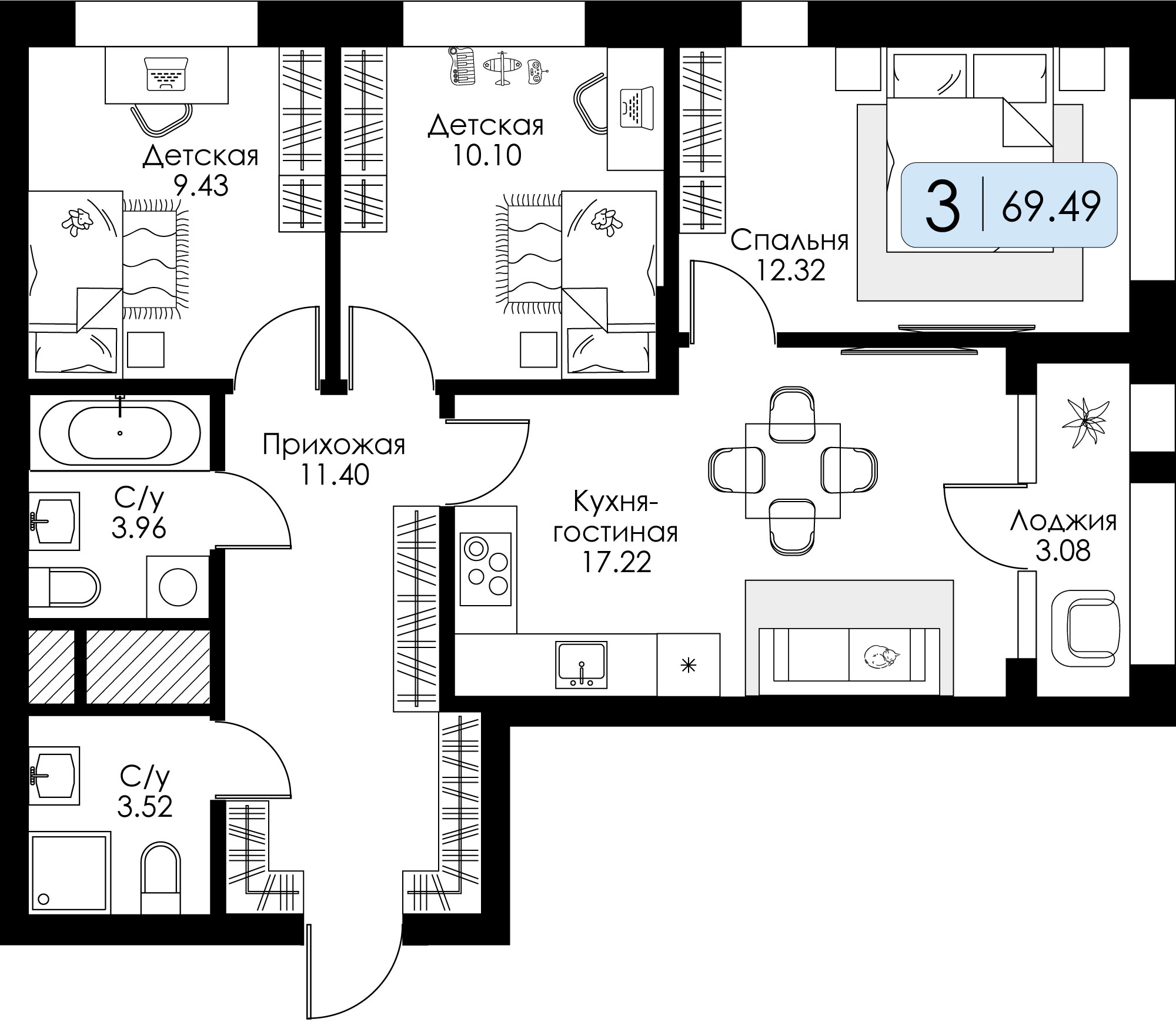 | 3-комн | от 64 м² до 69 м² | от 10,32 млн ₽ | 17 |