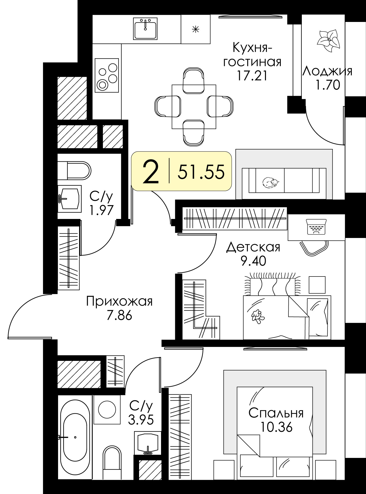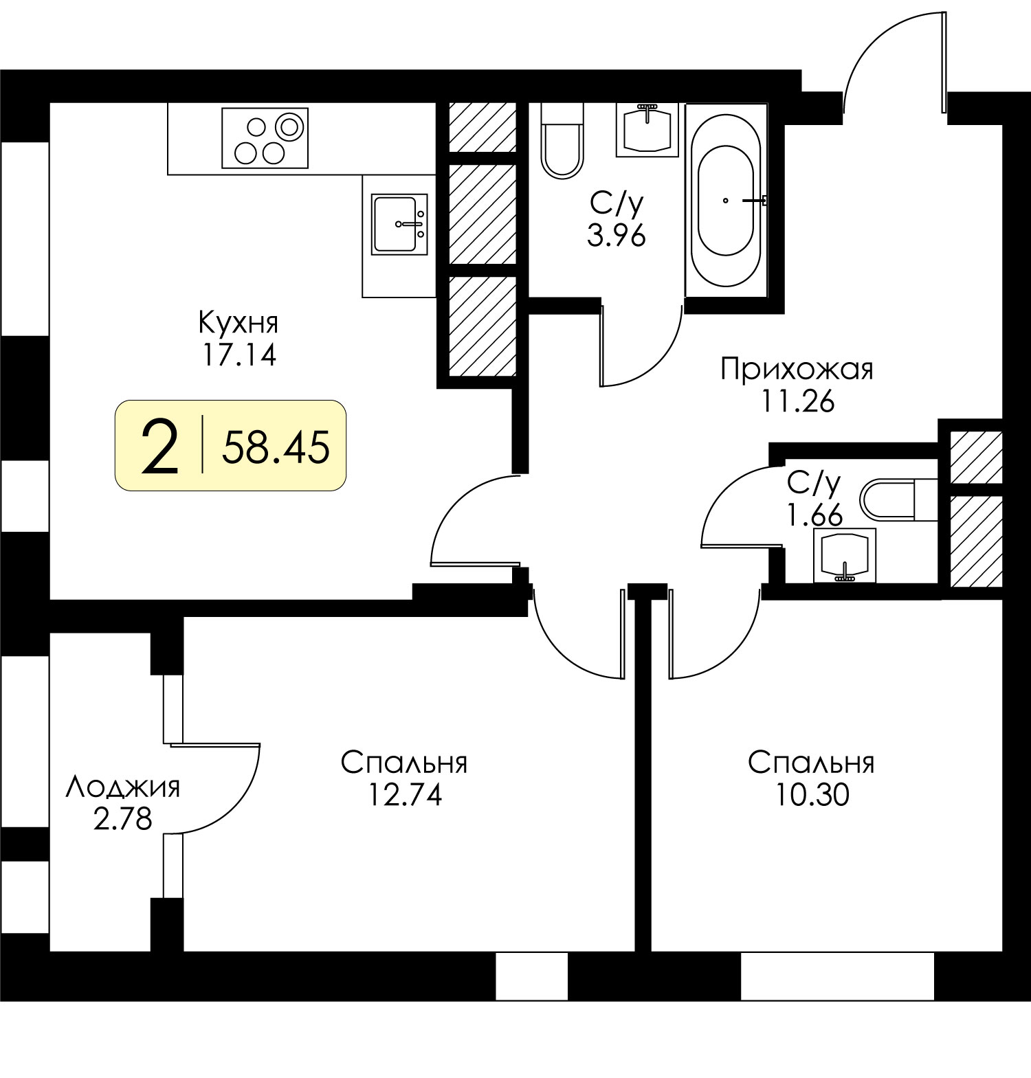 | 2-комн | от 47 м² до 58 м² | от 7,93 млн ₽ | 31 |