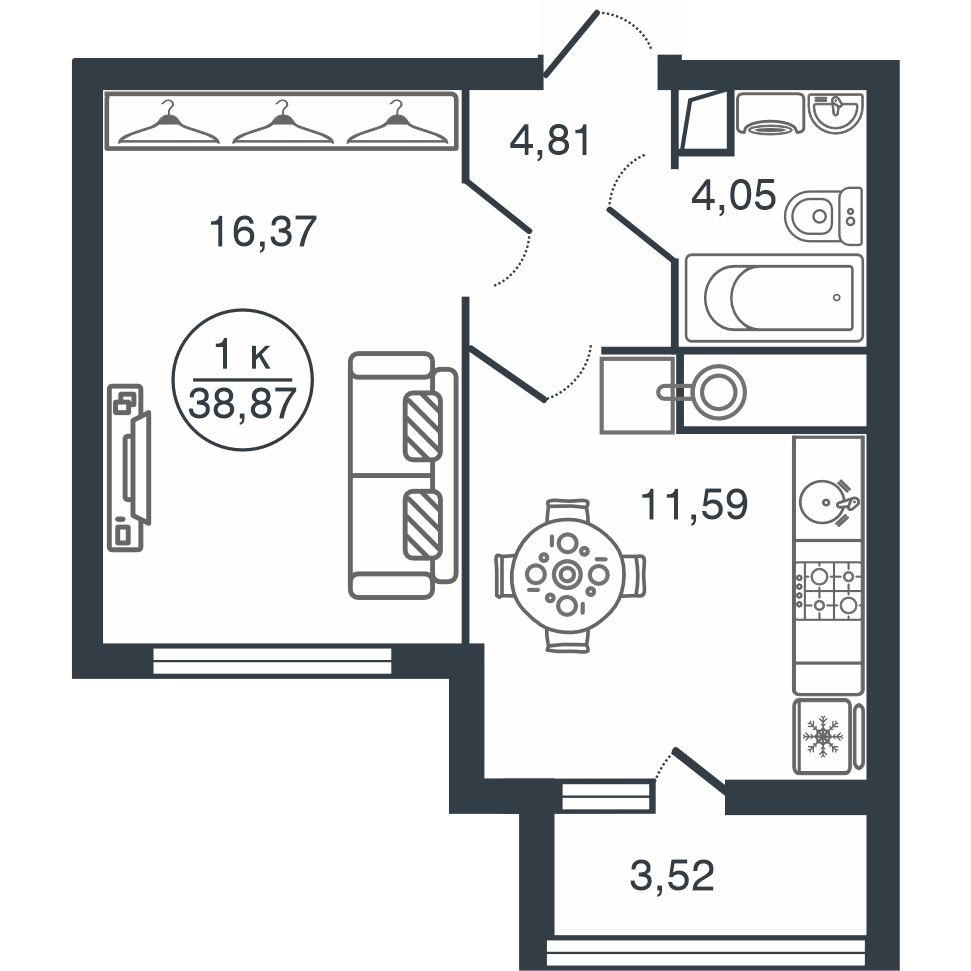 | 1-комн | от 37 м² до 47 м² | от 5,90 млн ₽ | 200 |