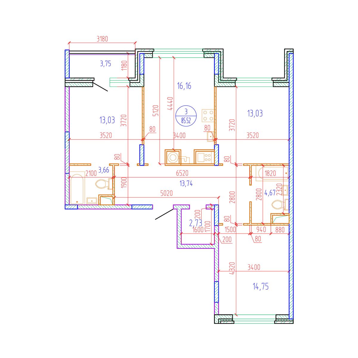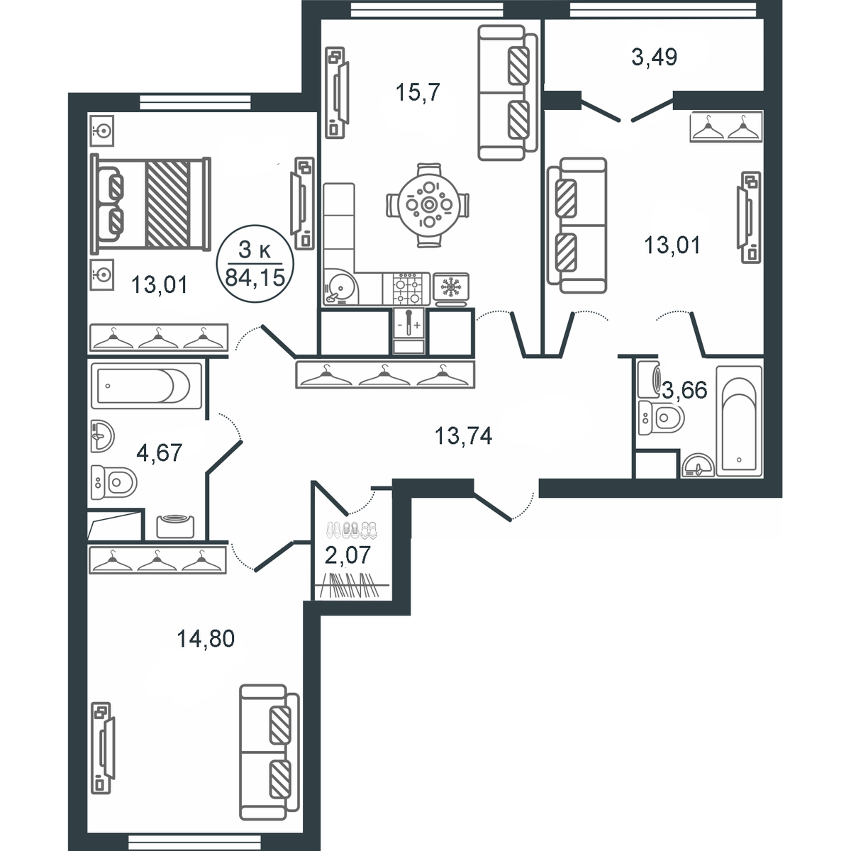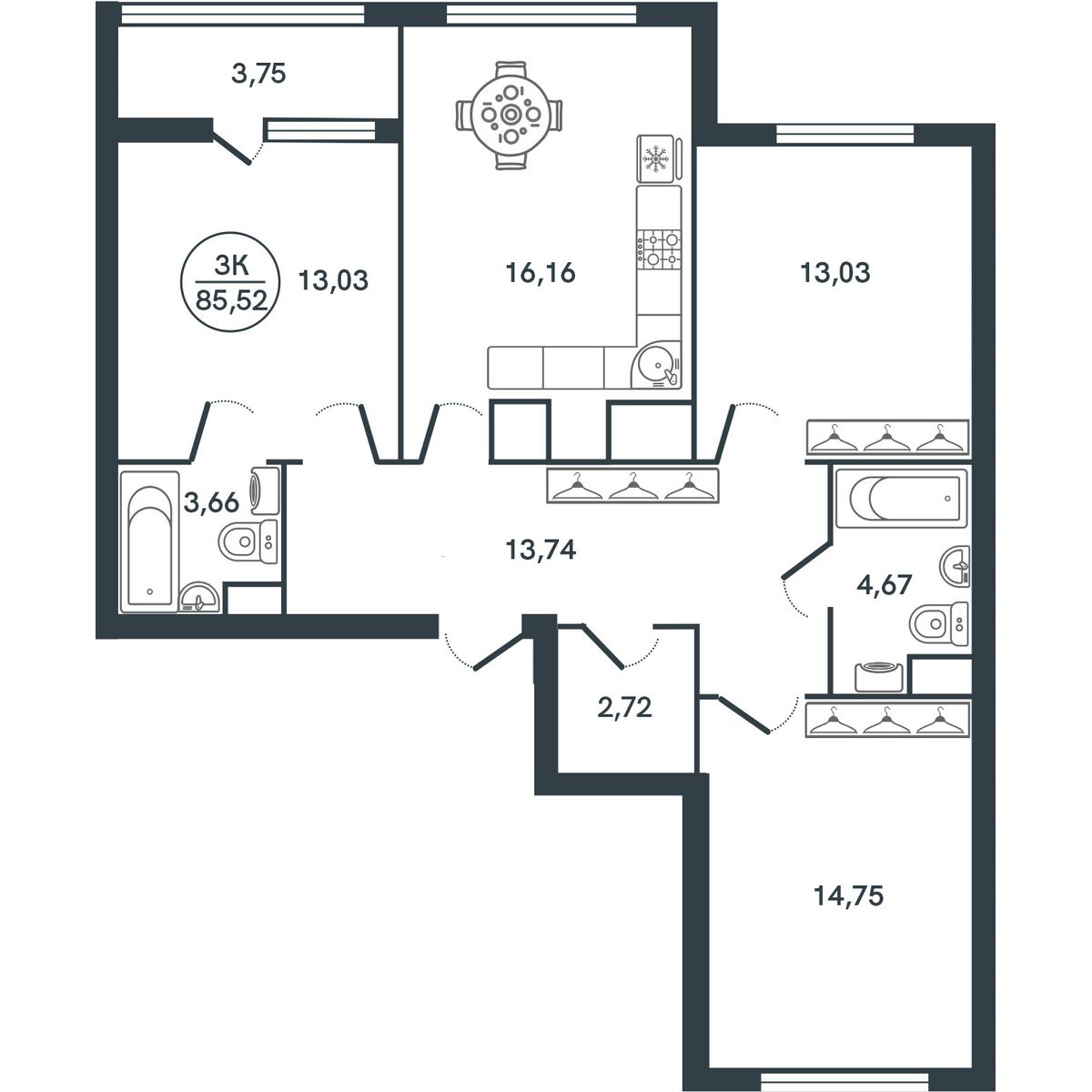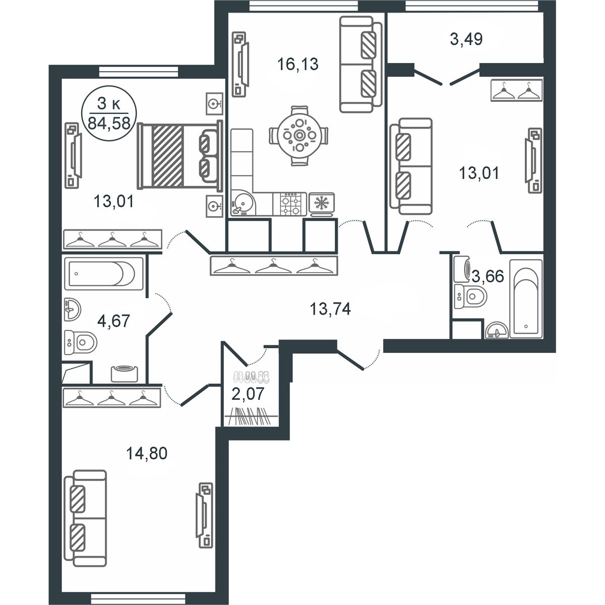 | 3-комн | от 84 м² до 86 м² | от 10,46 млн ₽ | 10 |