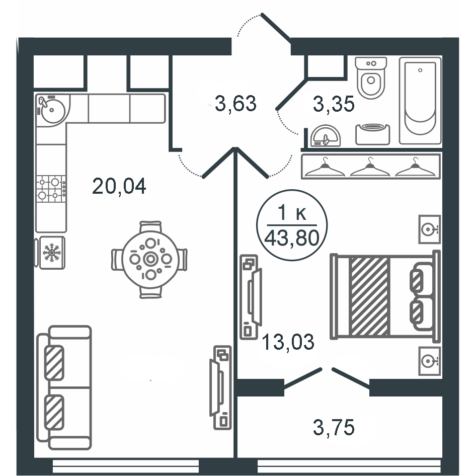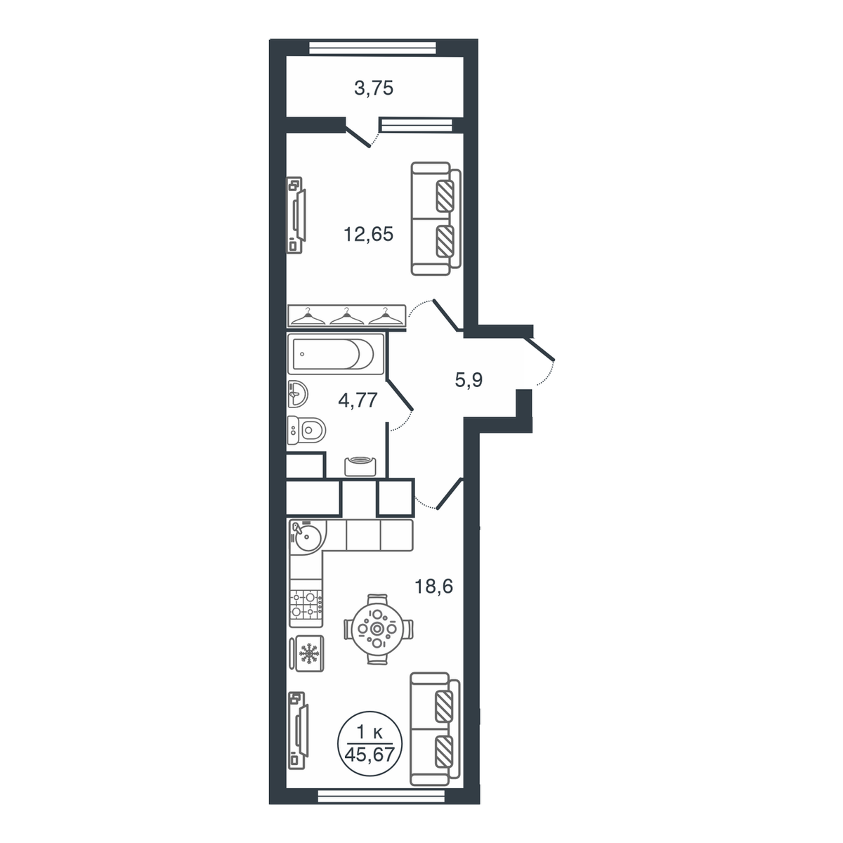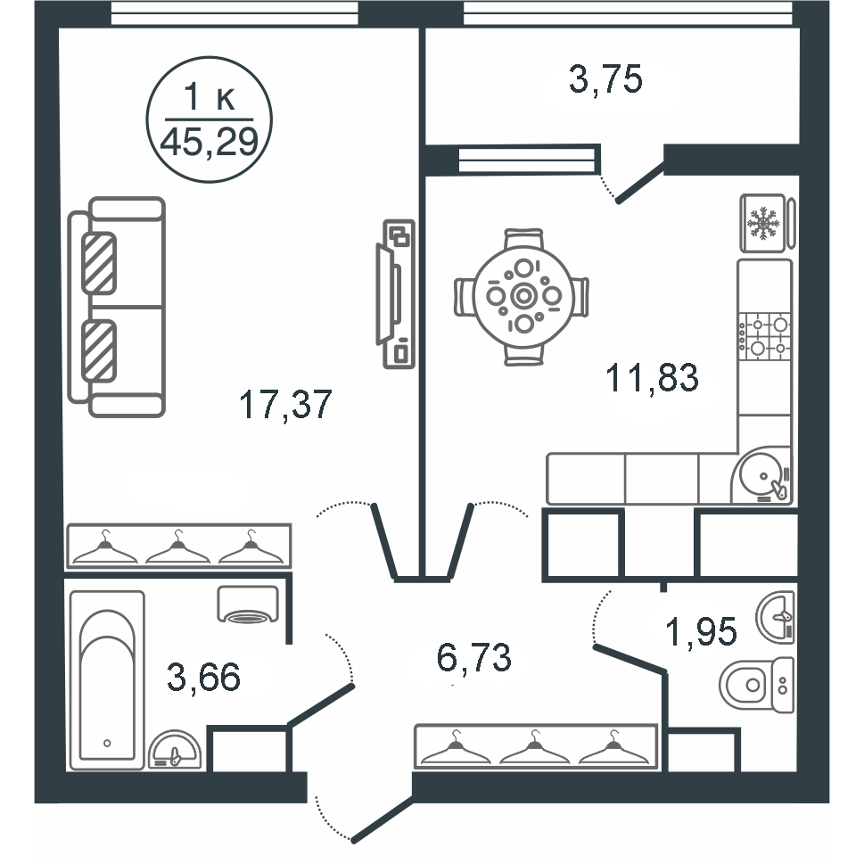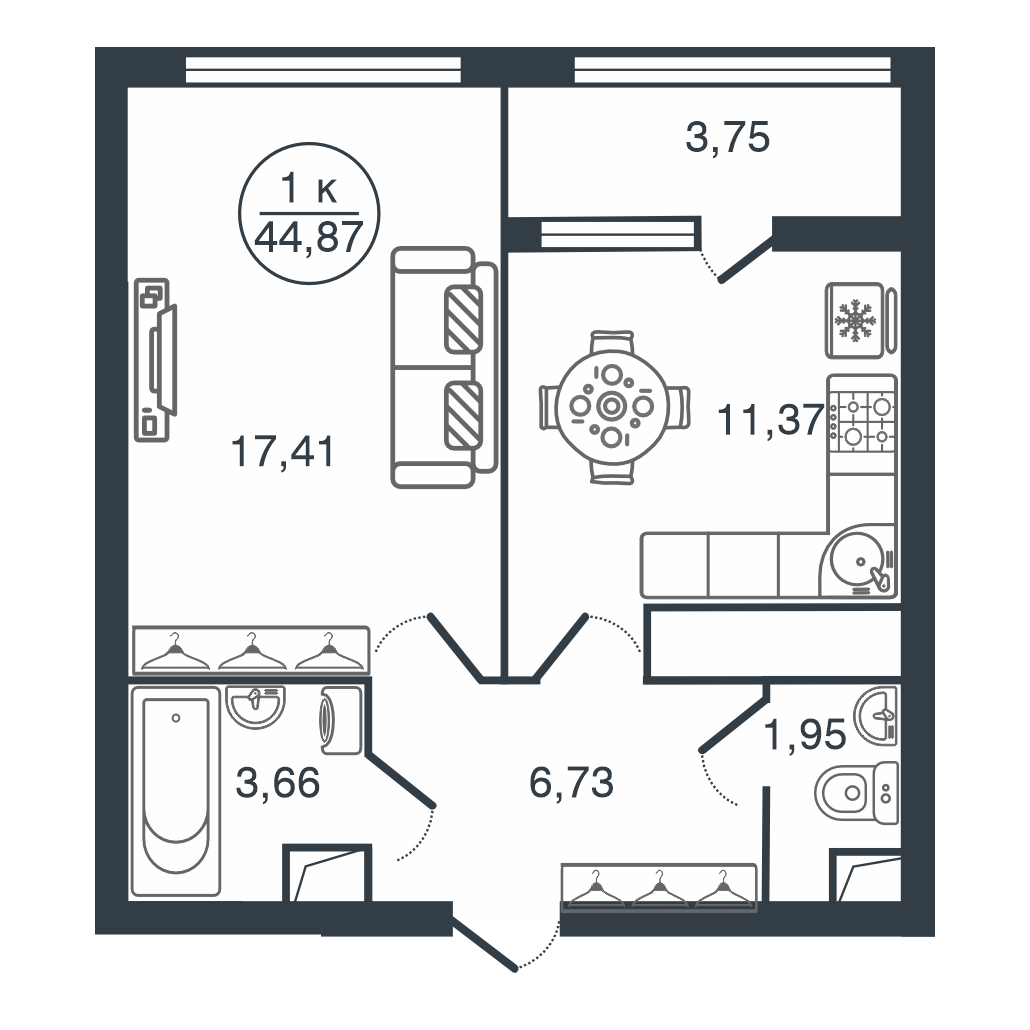| 1-комн | от 40 м² до 46 м² | от 6,44 млн ₽ | 17 |