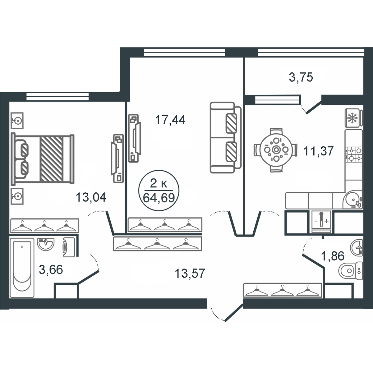 | 2-комн | от 60 м² до 65 м² | от 8,31 млн ₽ | 9 |