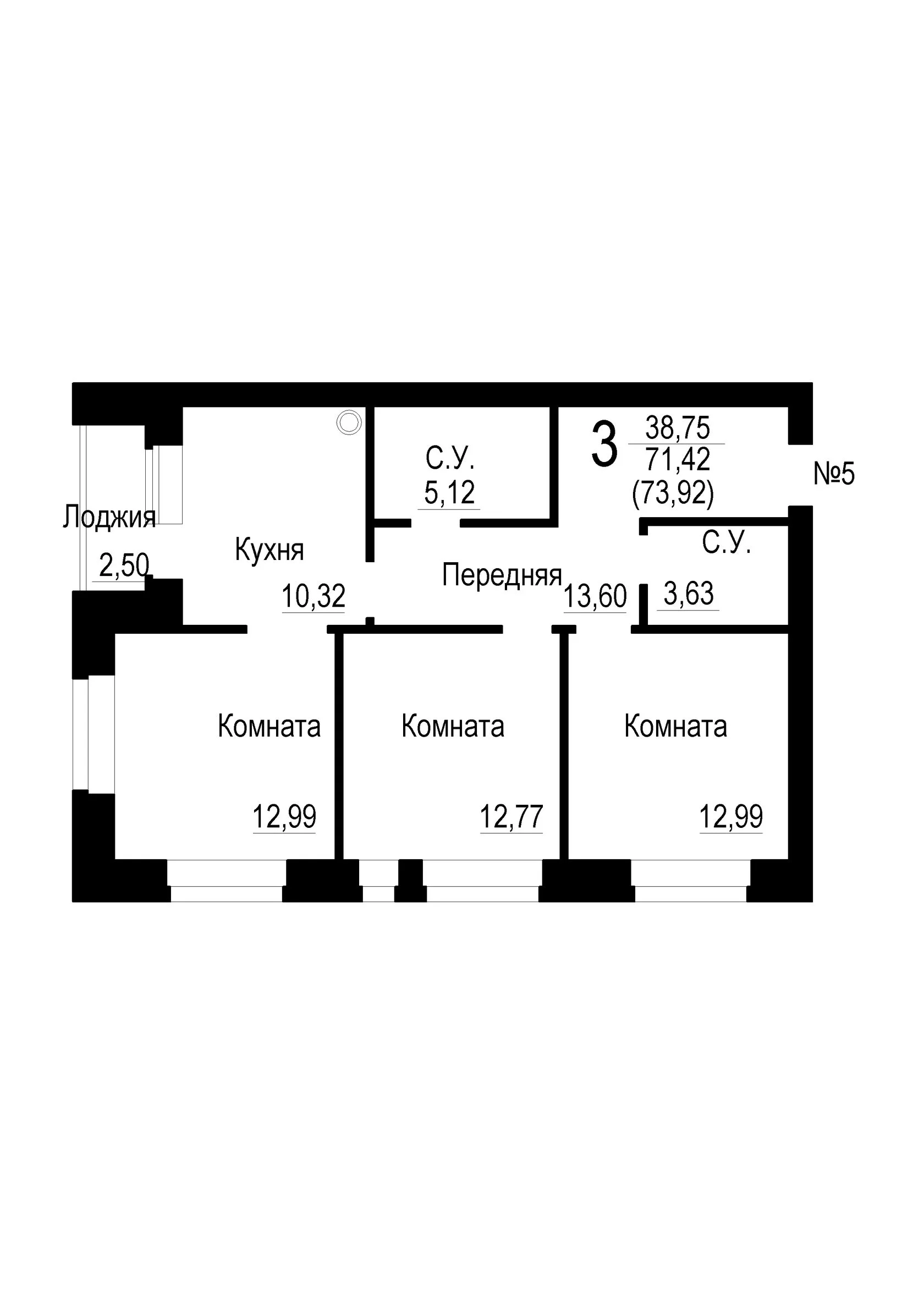 | 3-комн | от 75 м² до 76 м² | от 8,70 млн ₽ | 3 |