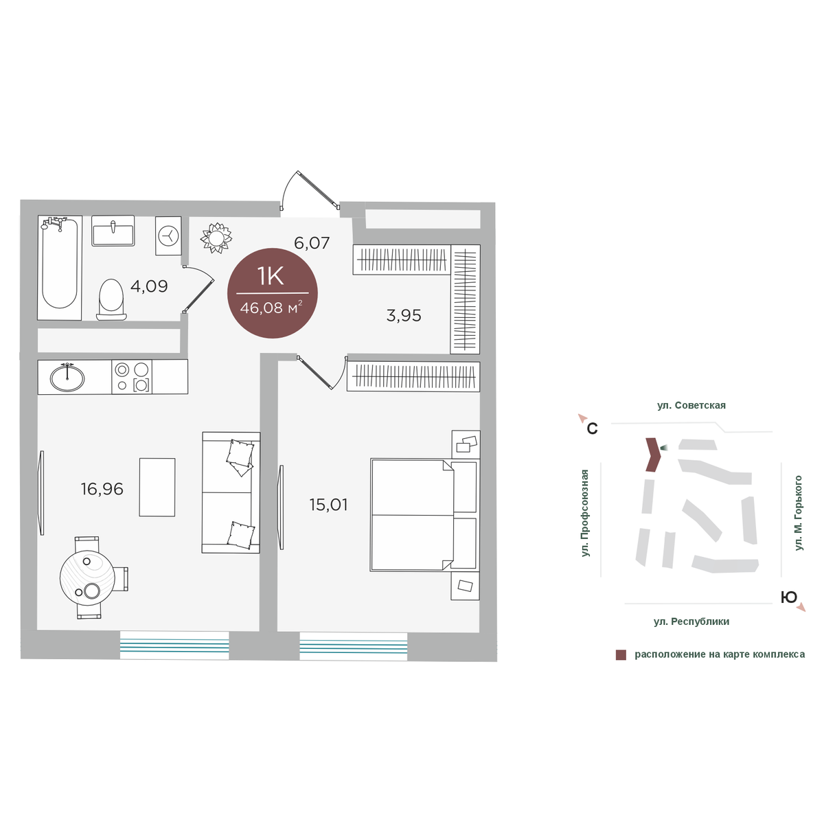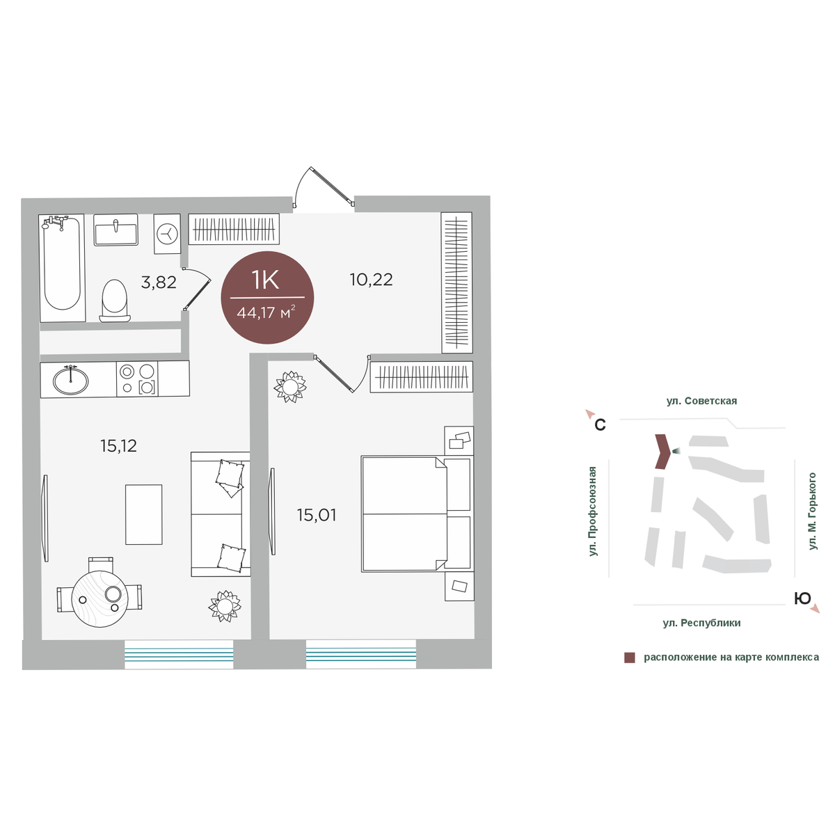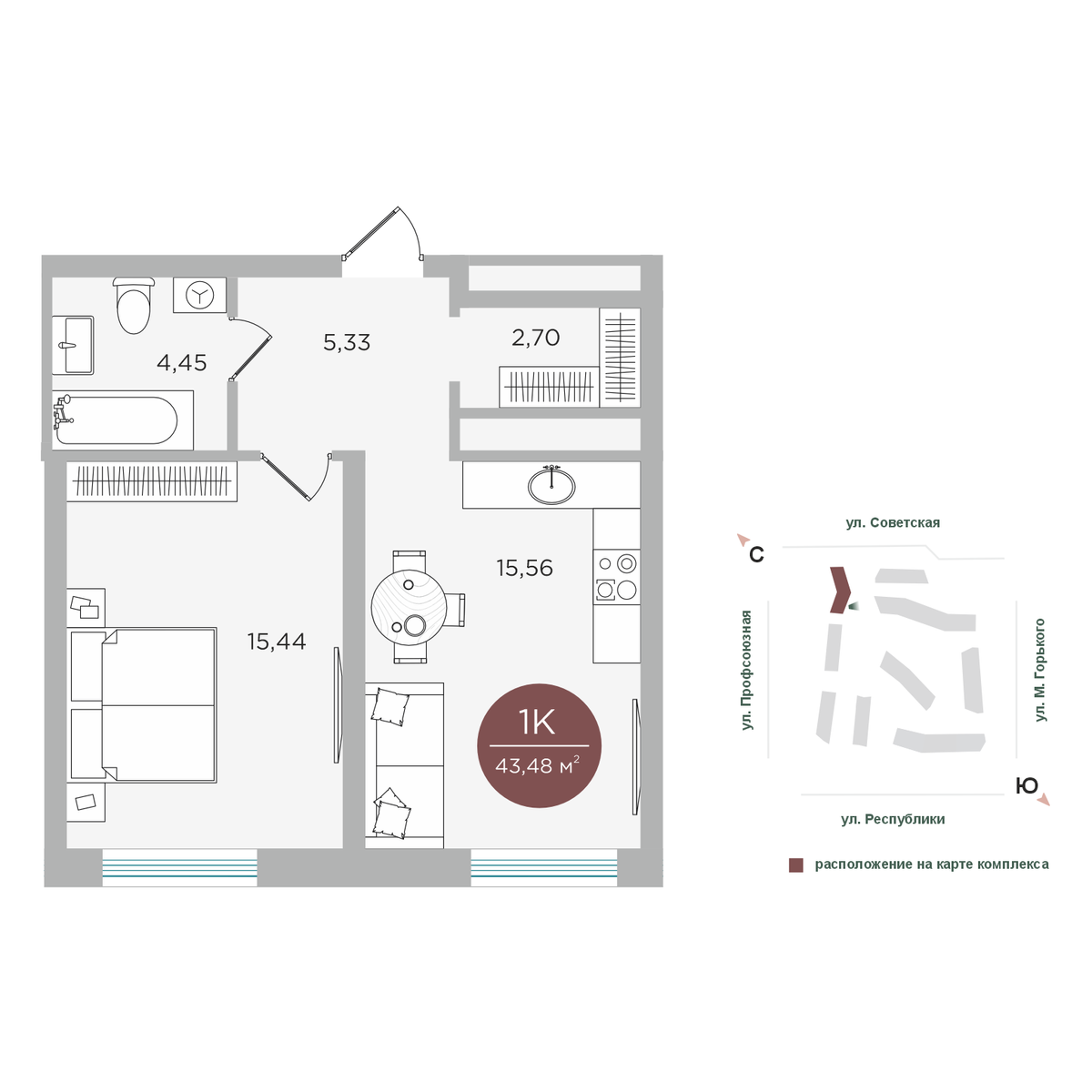 | 1-комн | от 42 м² до 48 м² | от 9,24 млн ₽ | 26 |
