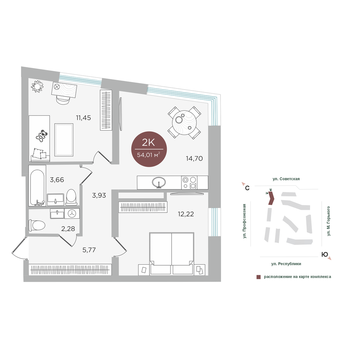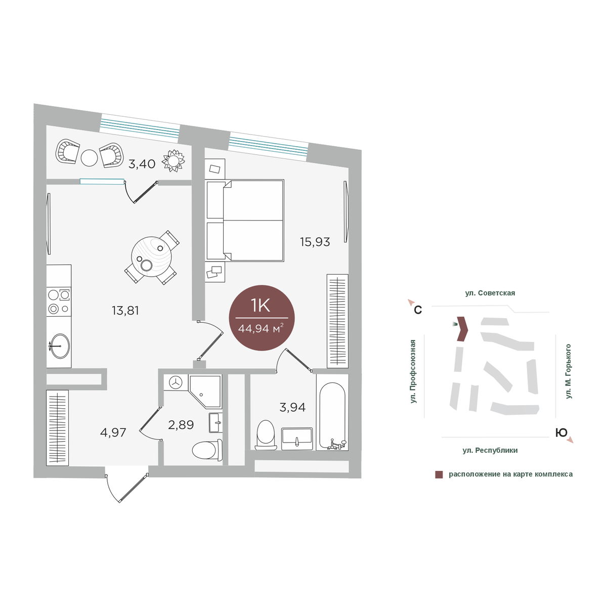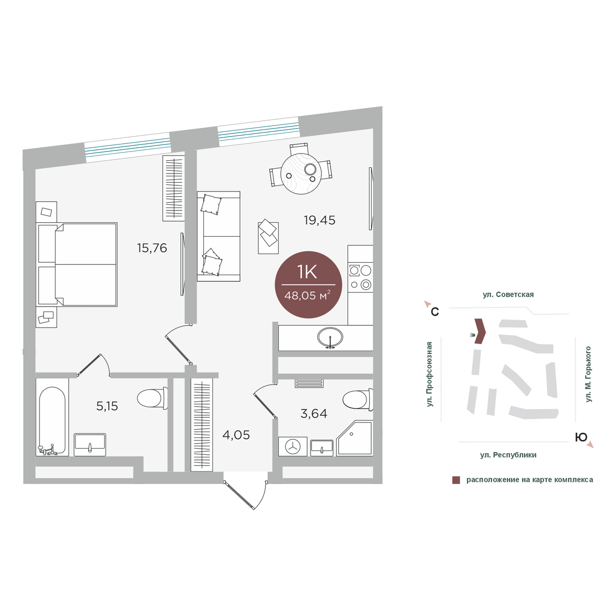 | 1-комн | от 42 м² до 48 м² | от 9,24 млн ₽ | 26 |