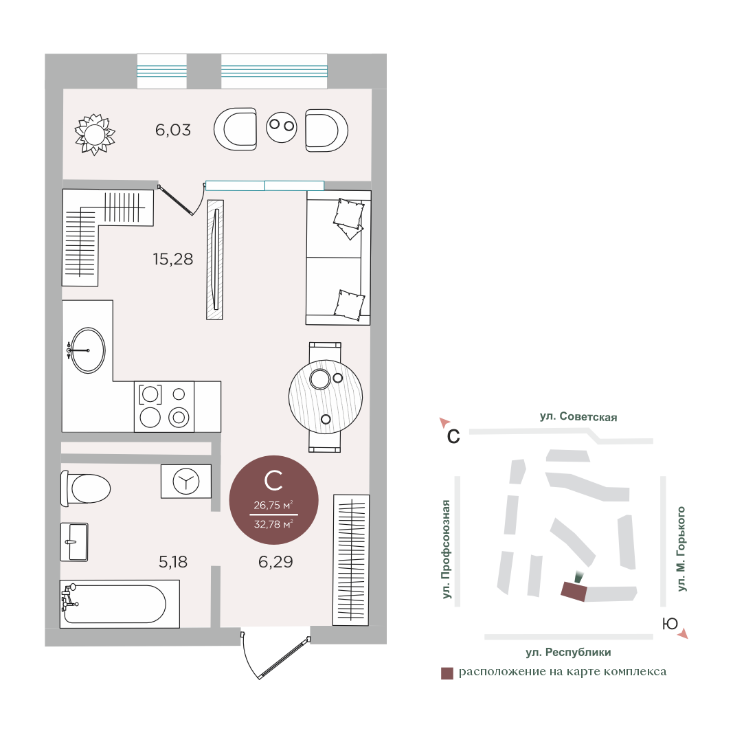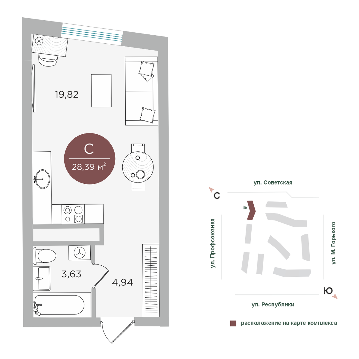 | Студии | от 27 м² до 28 м² | от 7,98 млн ₽ | 4 |
