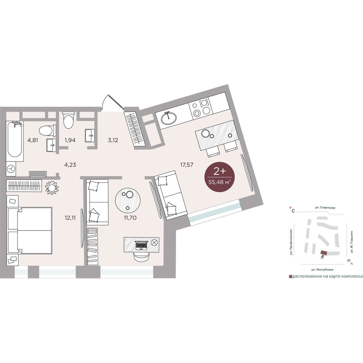| 2-комн | от 53 м² до 81 м² | от 11,43 млн ₽ | 29 |