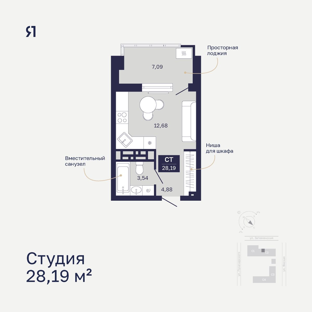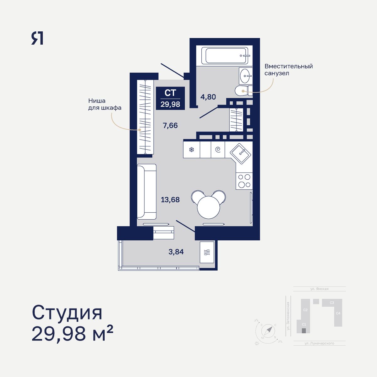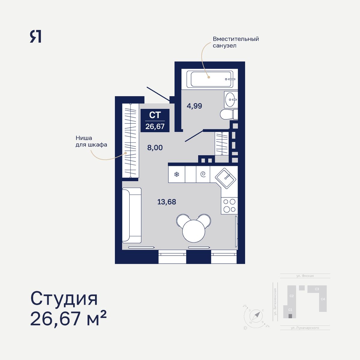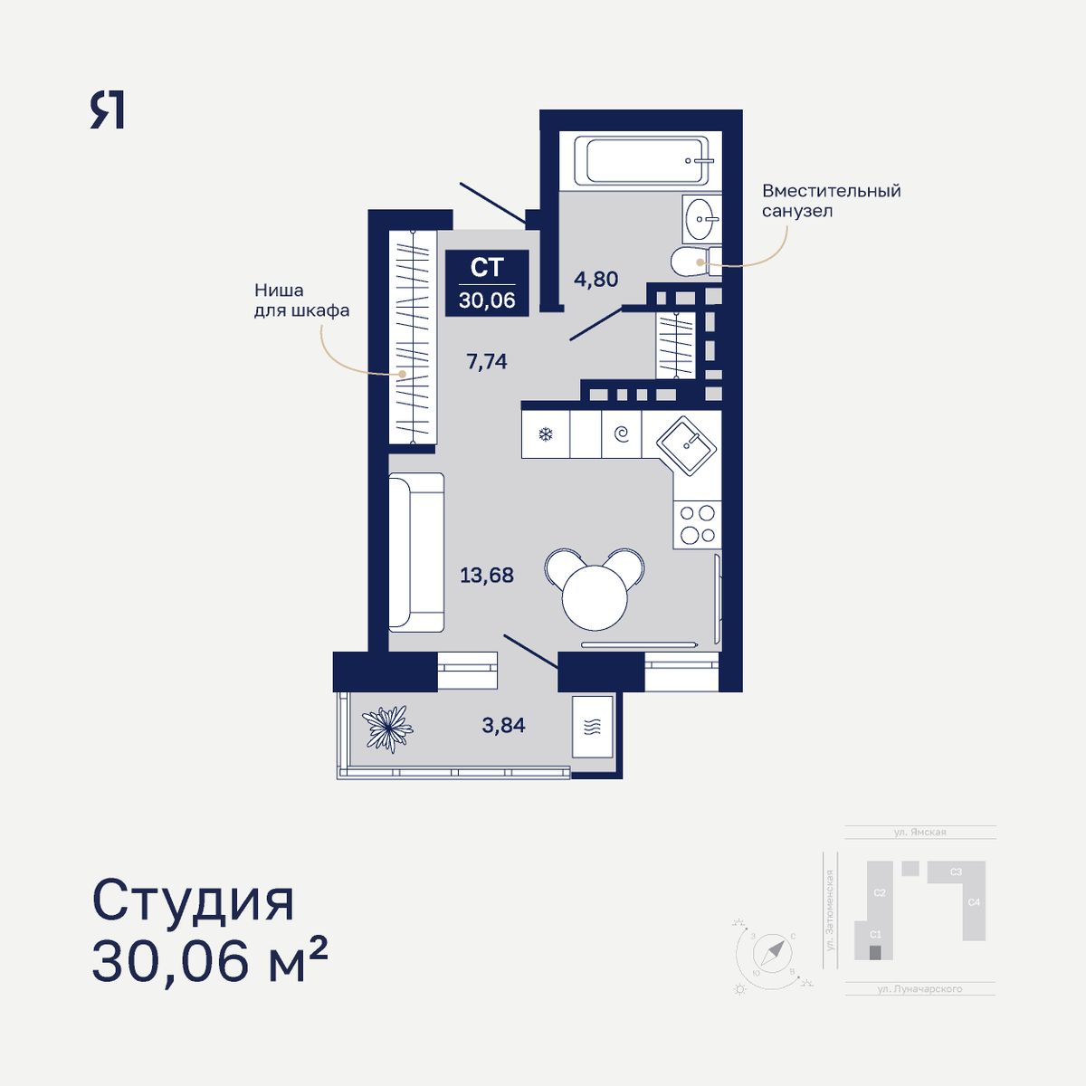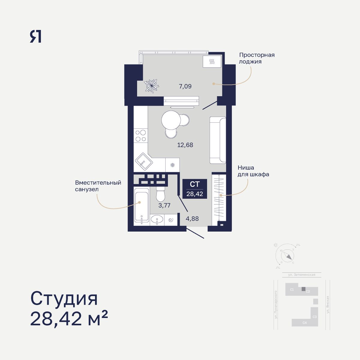 | Студии | от 25 м² до 30 м² | от 7,31 млн ₽ | 10 |
