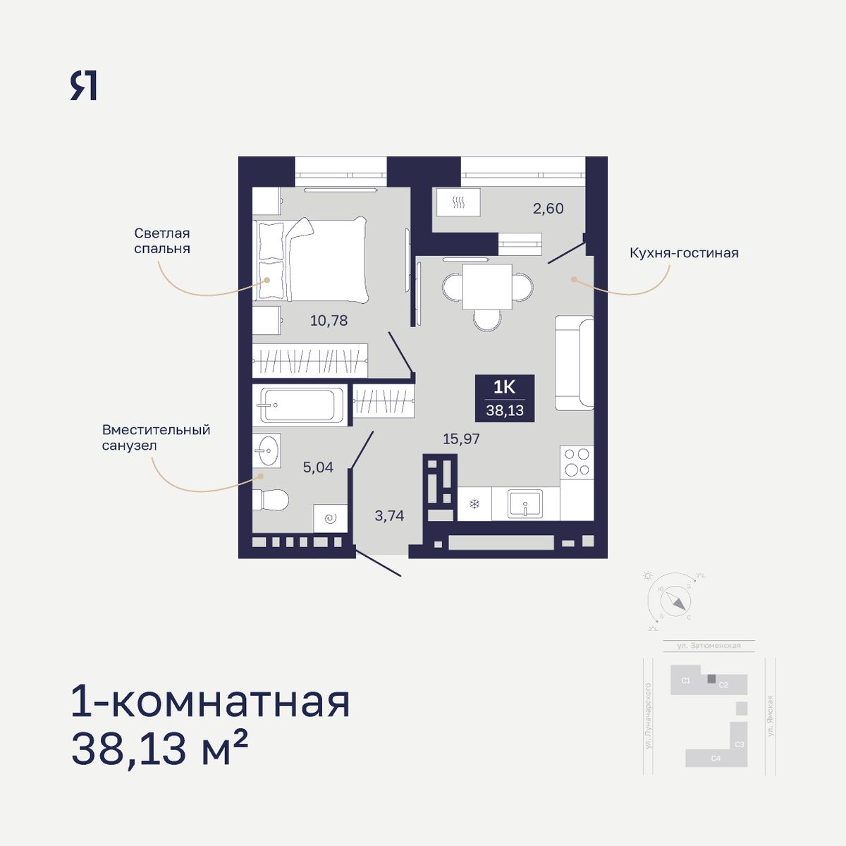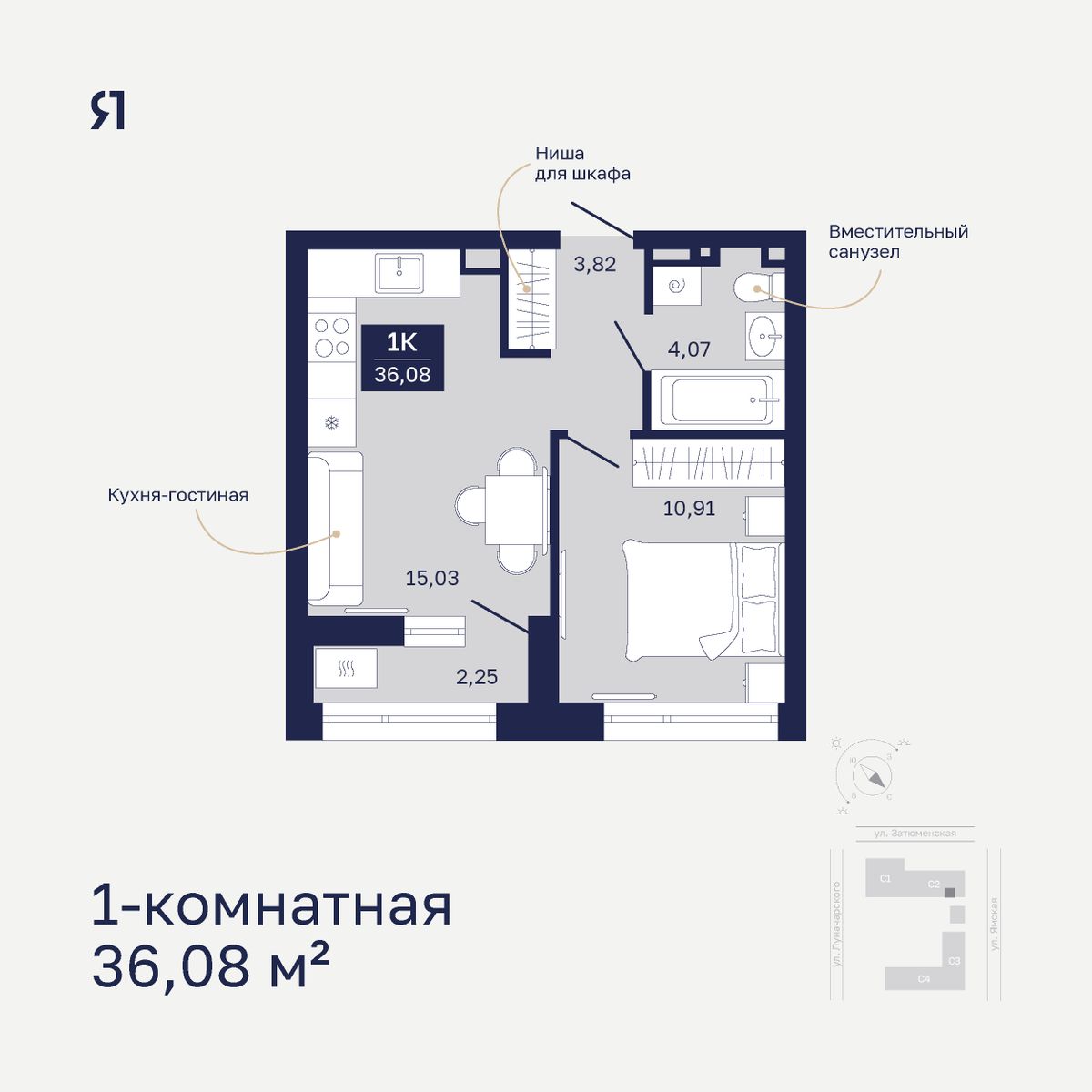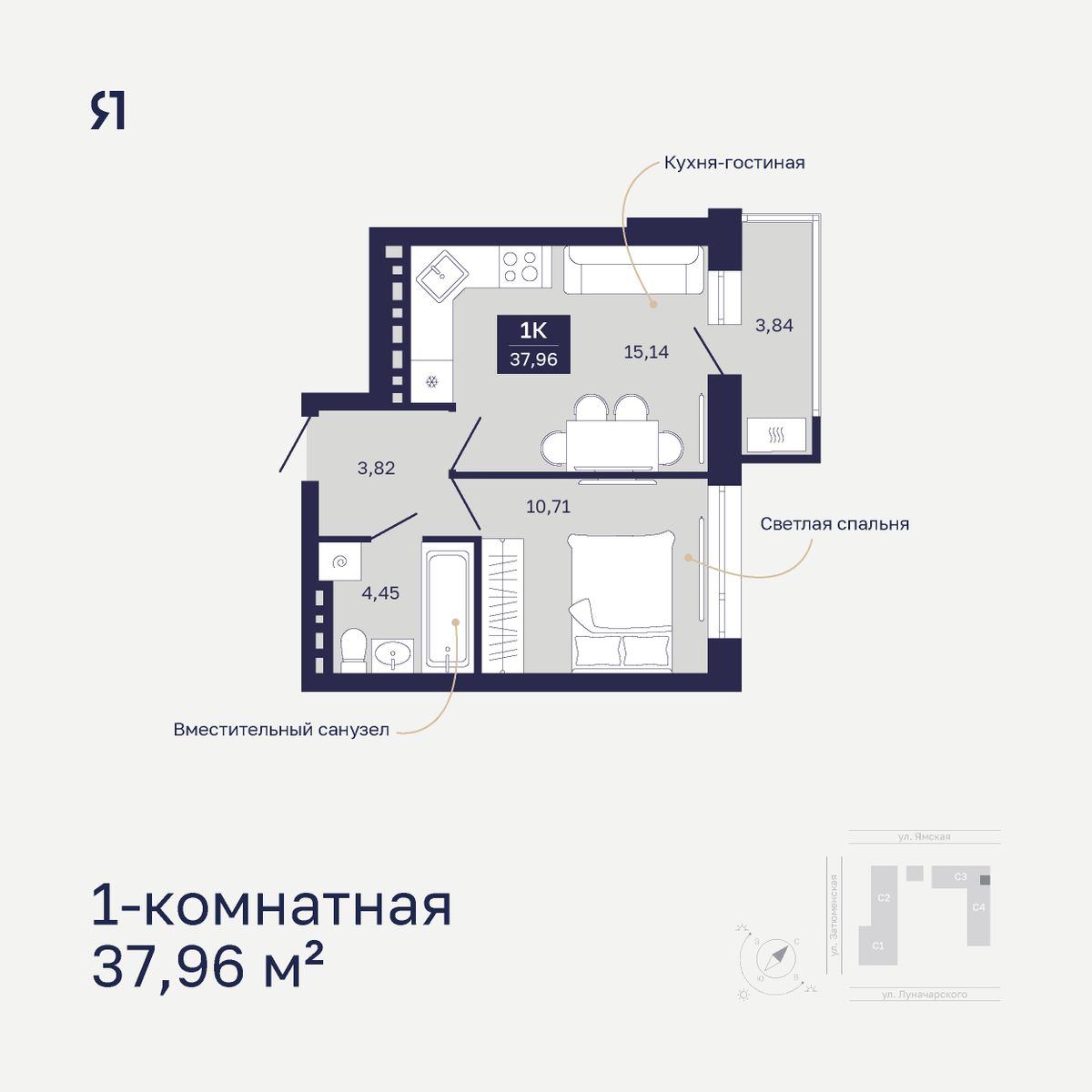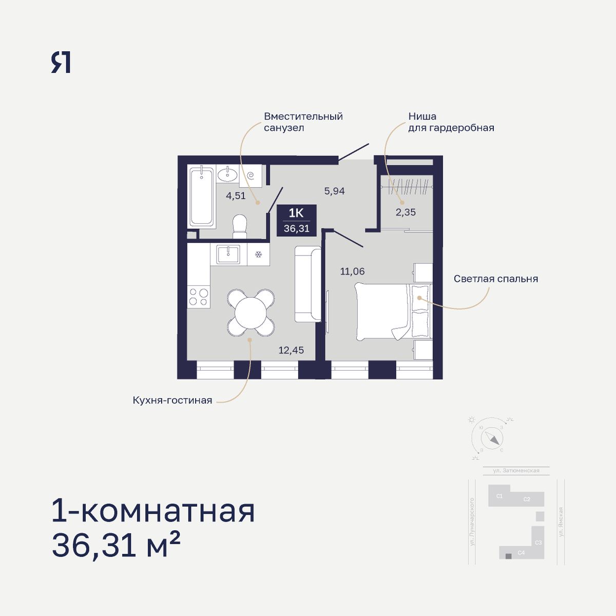 | 1-комн | от 36 м² до 47 м² | от 8,98 млн ₽ | 31 |