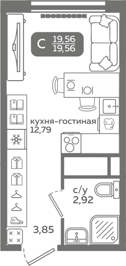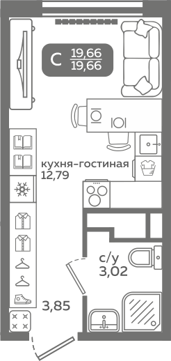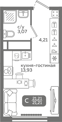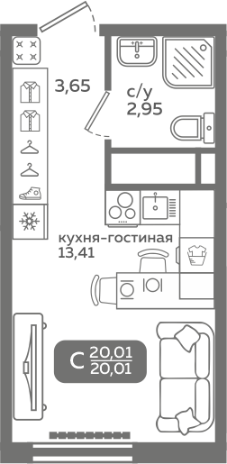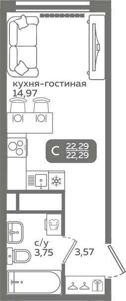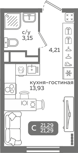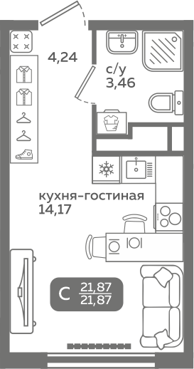 | Студии | от 20 м² до 37 м² | от 3,54 млн ₽ | 121 |