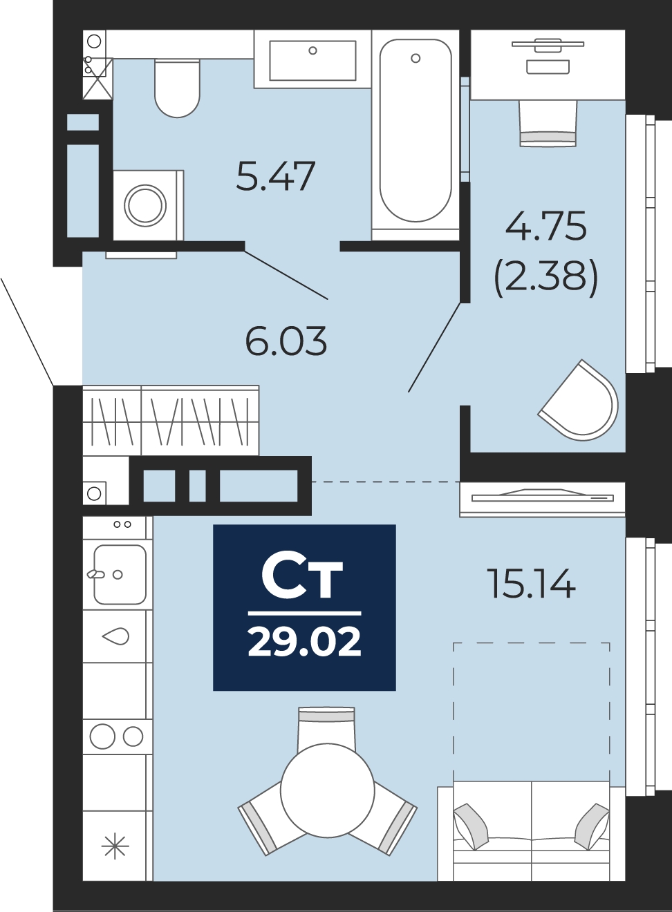 | 1-комн | от 27 м² до 48 м² | от 4,17 млн ₽ | 312 |