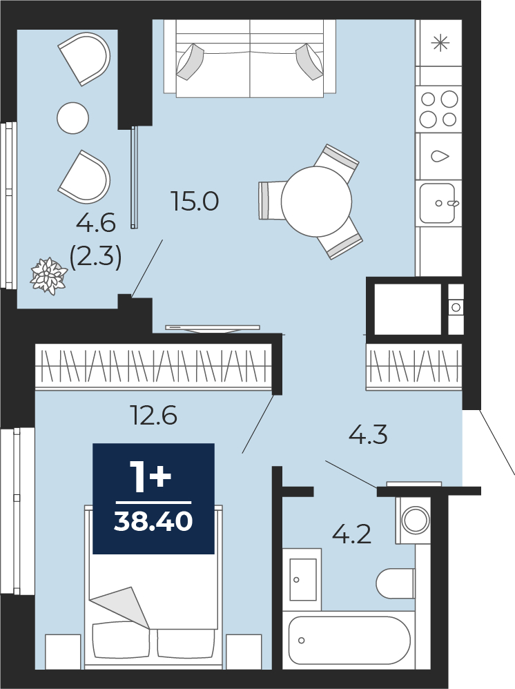 | 1-комн | от 26 м² до 48 м² | от 5,22 млн ₽ | 188 |