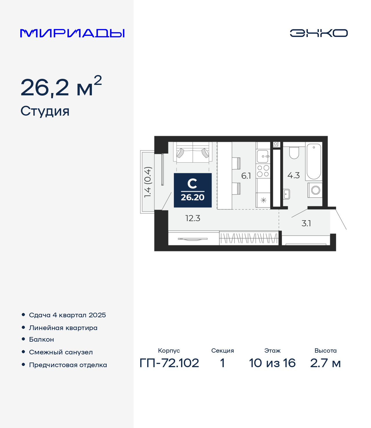 | 3-комн | от 73 м² до 105 м² | от 10,26 млн ₽ | 31 |
