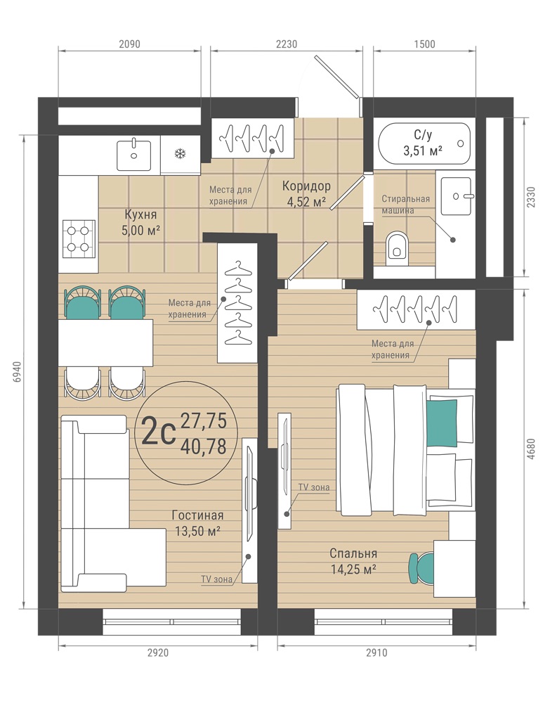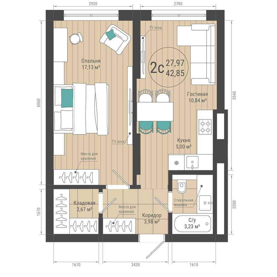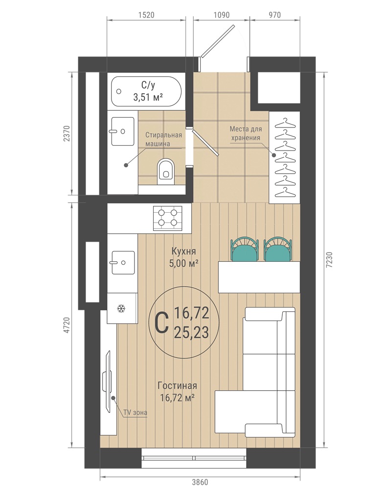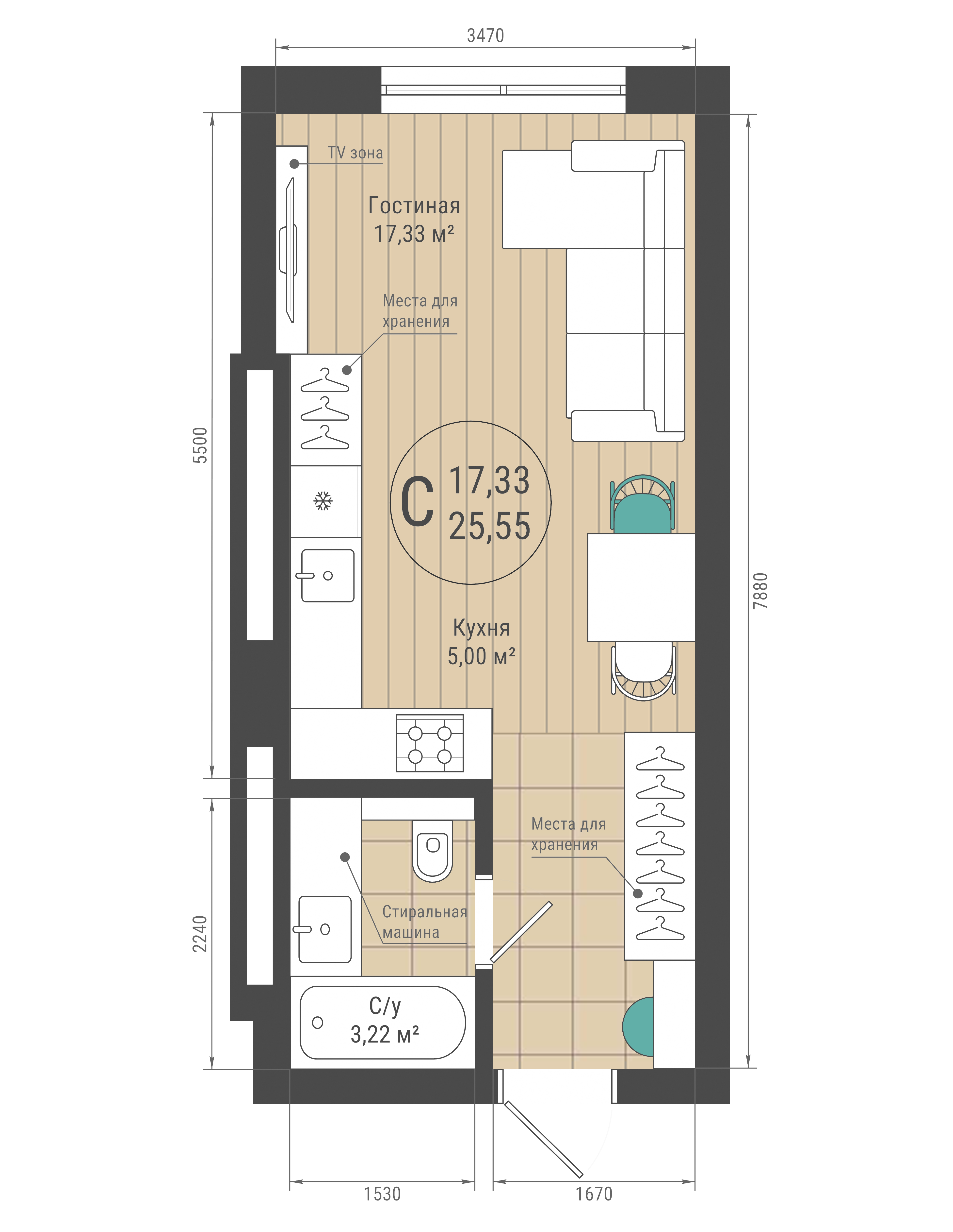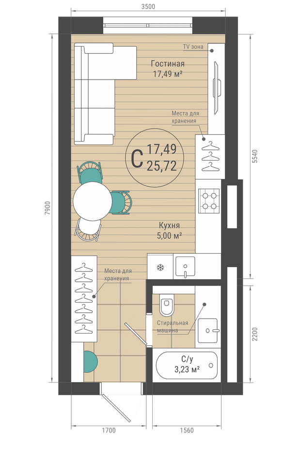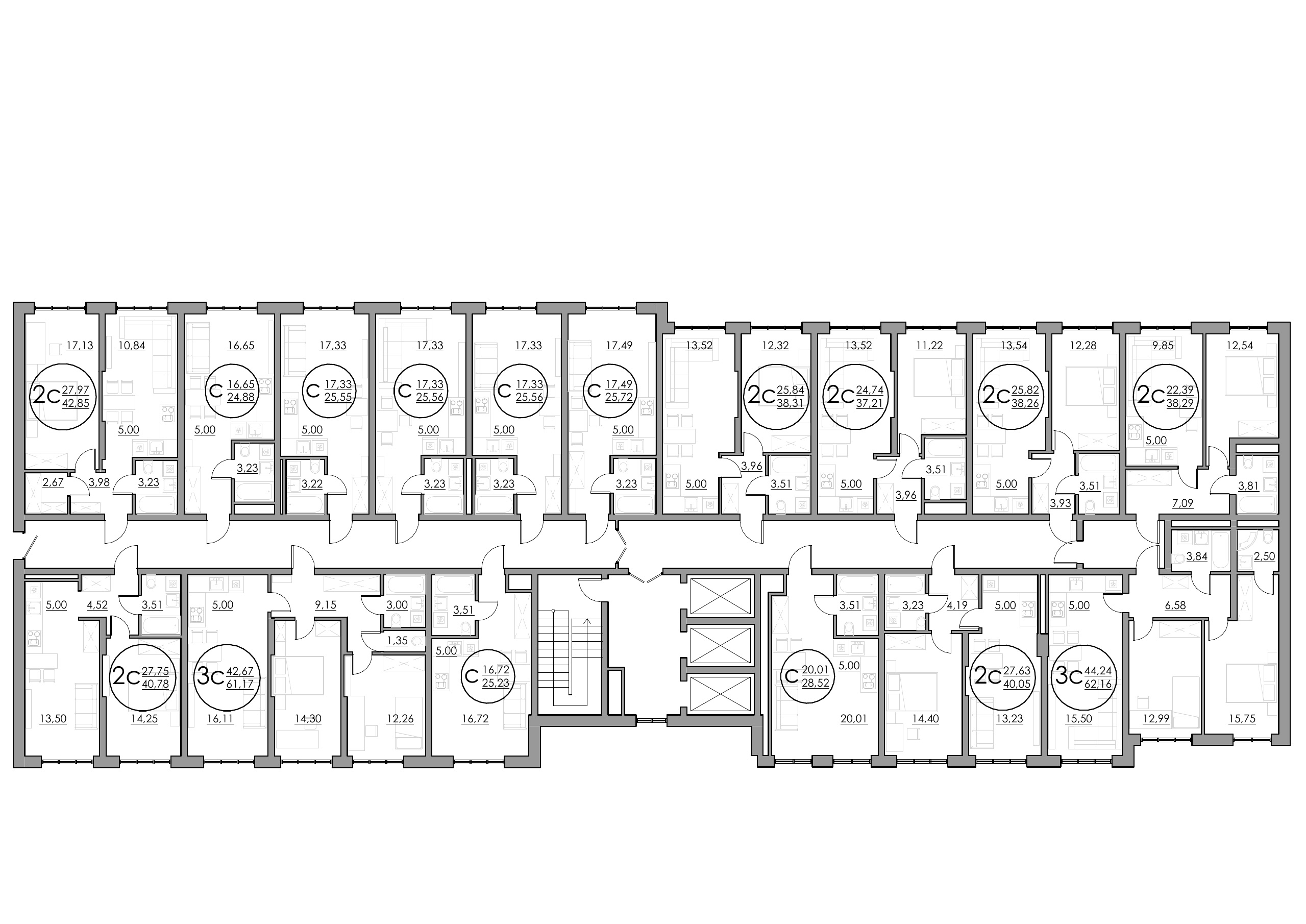 | Студии | от 25 м² до 29 м² | от 6,25 млн ₽ | 9 |