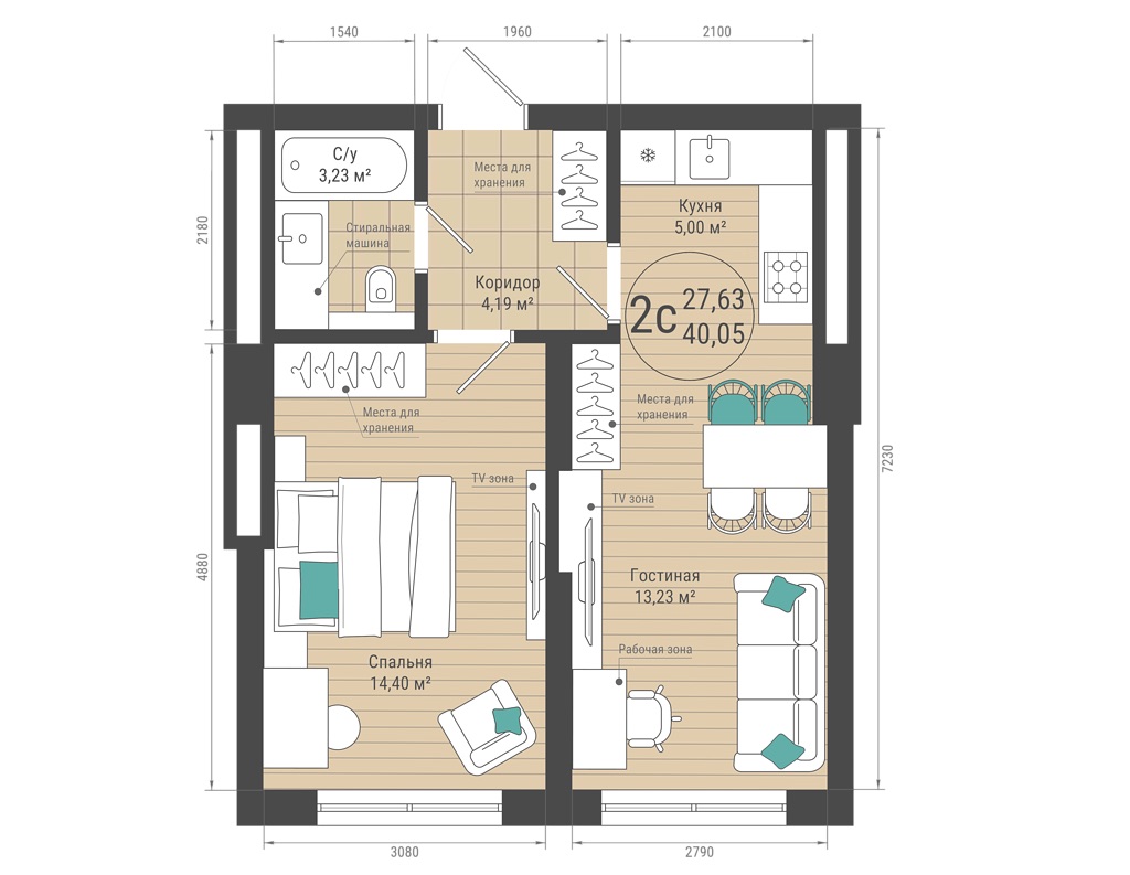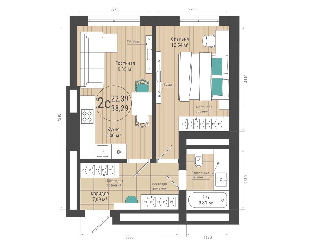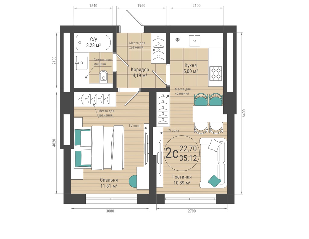 | 2-комн | от 35 м² до 46 м² | от 7,70 млн ₽ | 119 |