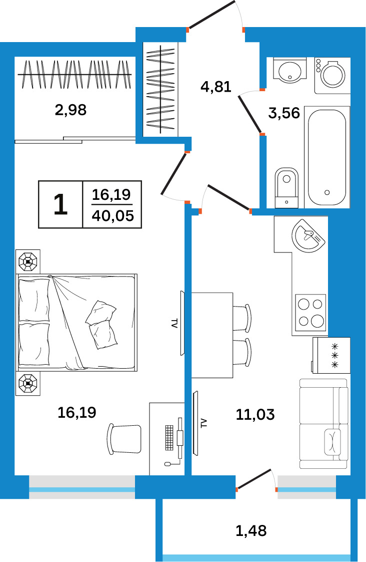 | 1-комн | от 21 м² до 48 м² | от 3,67 млн ₽ | 463 |