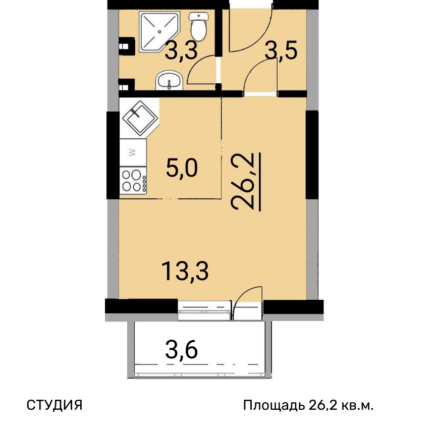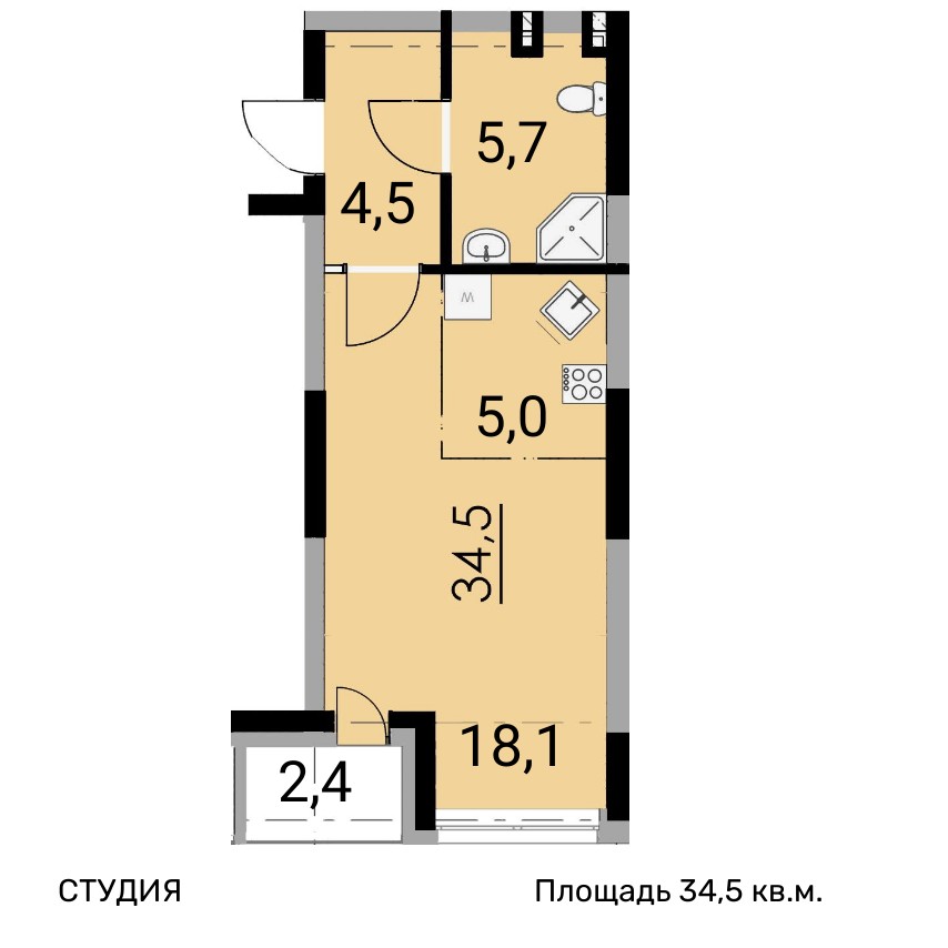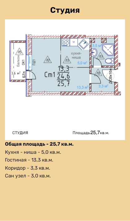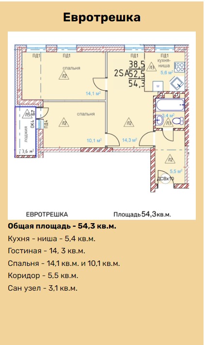 | Студии | от 26 м² до 54 м² | от 3,34 млн ₽ | 38 |