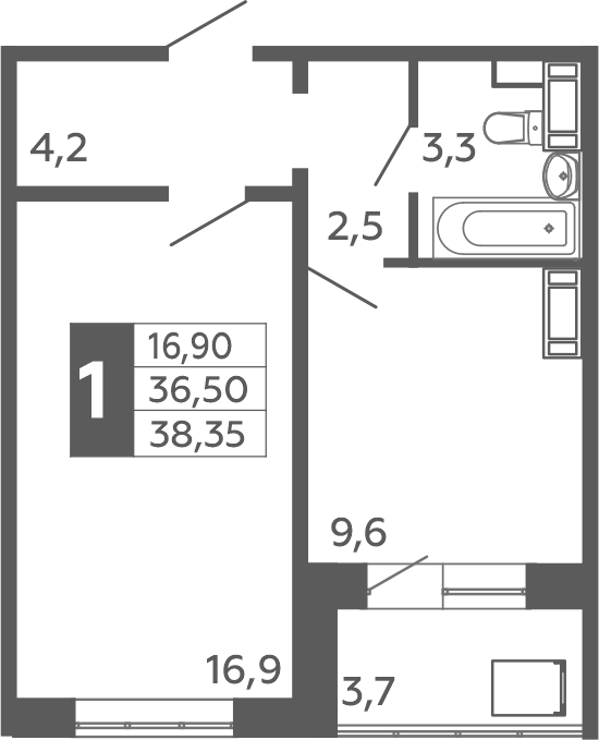 | 1-комн | от 38 м² до 38 м² | от 4,65 млн ₽ | 21 |
